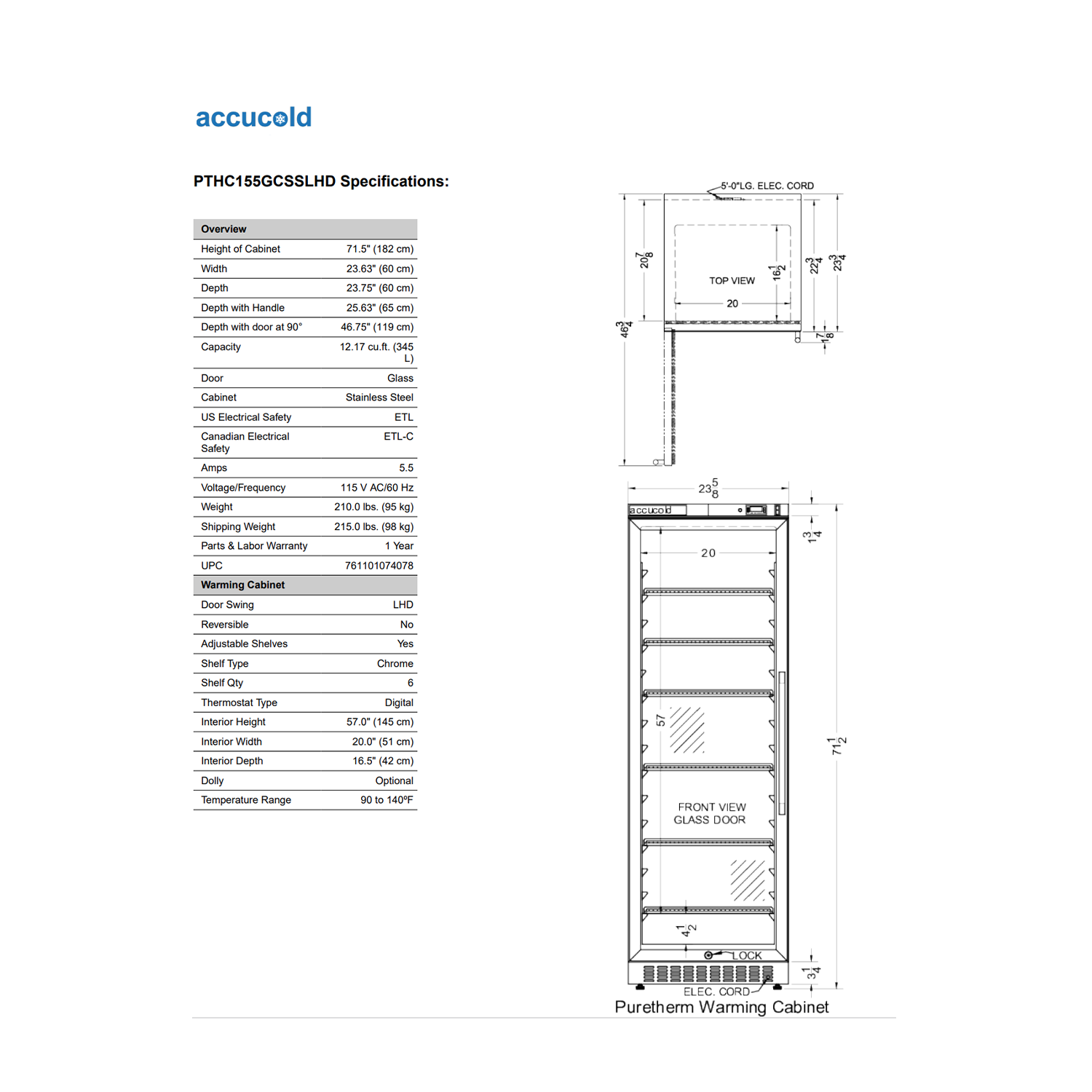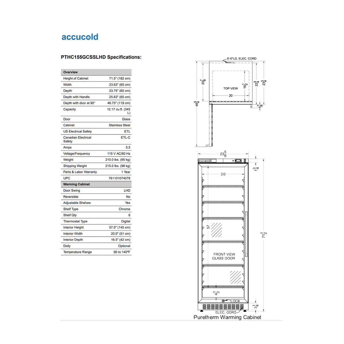 Accucold PTHC155GCSSLHD 24" 12.17 Cu. Ft. PureTherm Blanket Warmer - Glass LEFT Door
