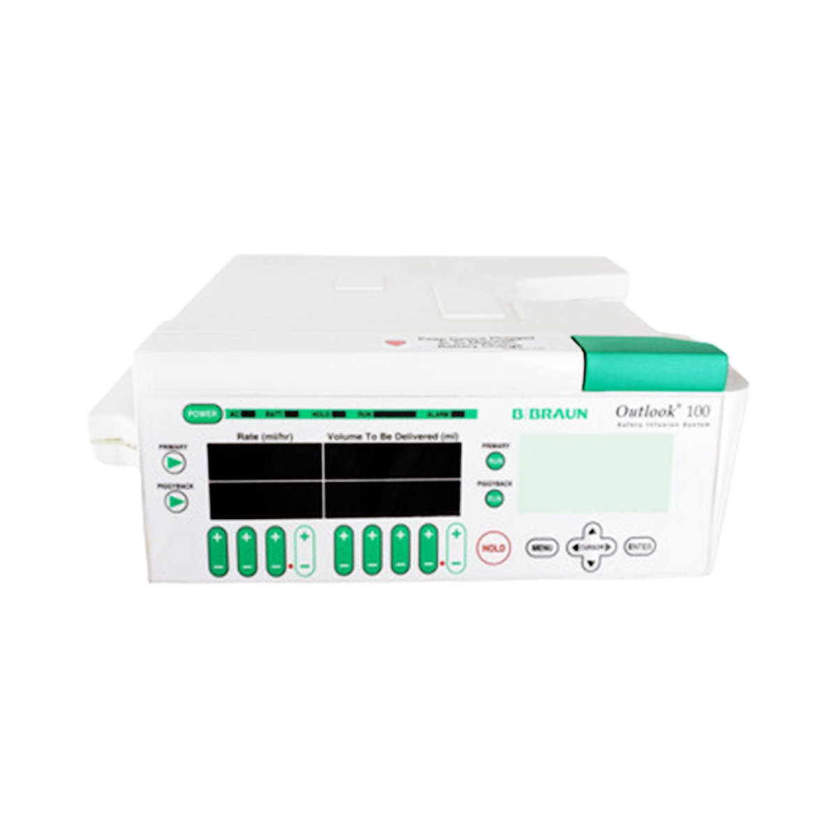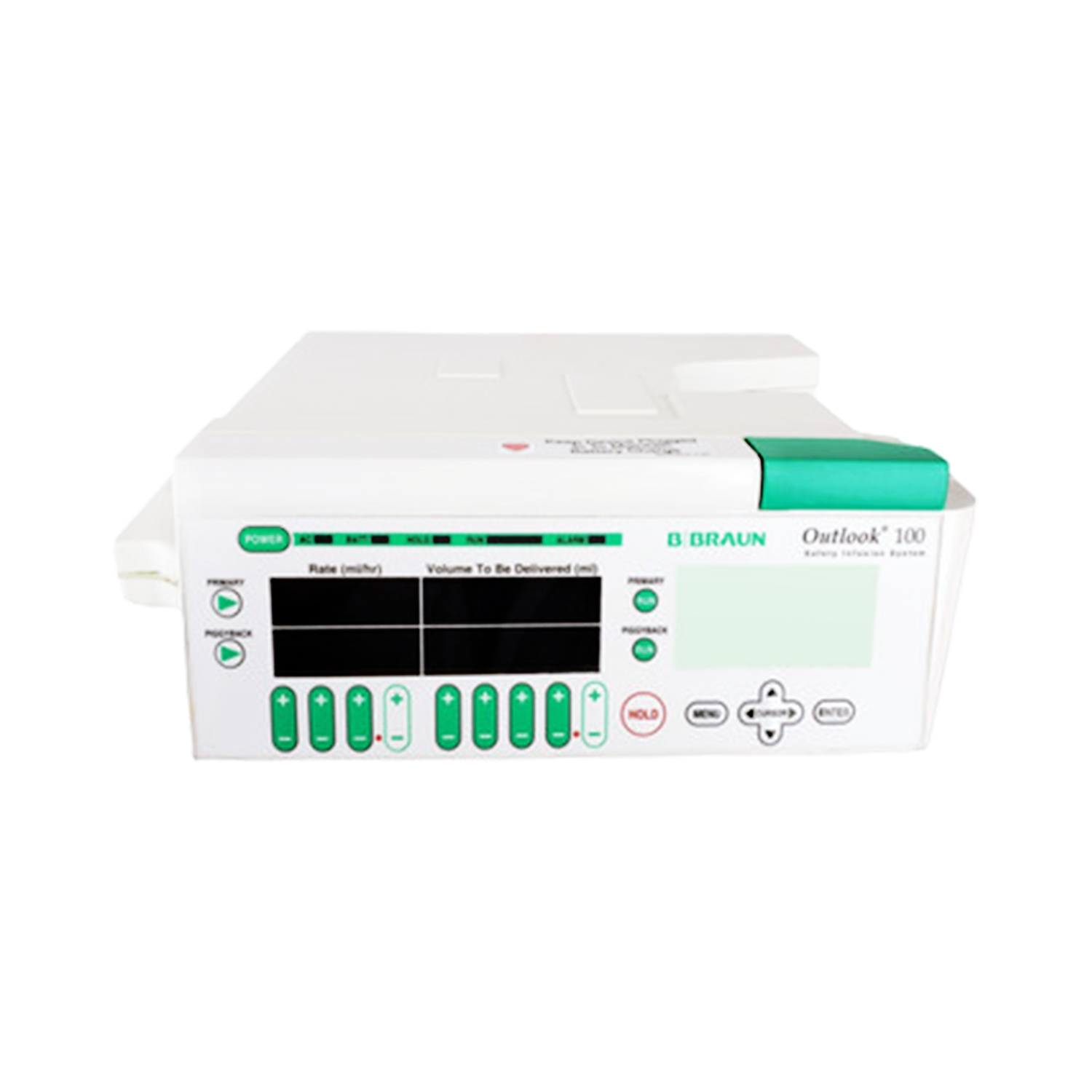 The B. Braun Outlook 100 infusion pump is designed with a keypad that is color-coded and produces audible key clicks. This pump is not only safe and reliable but also extremely user-friendly. It offers a large color display that allows for a comprehensive and convenient view of the infusion status, providing information at a glance.