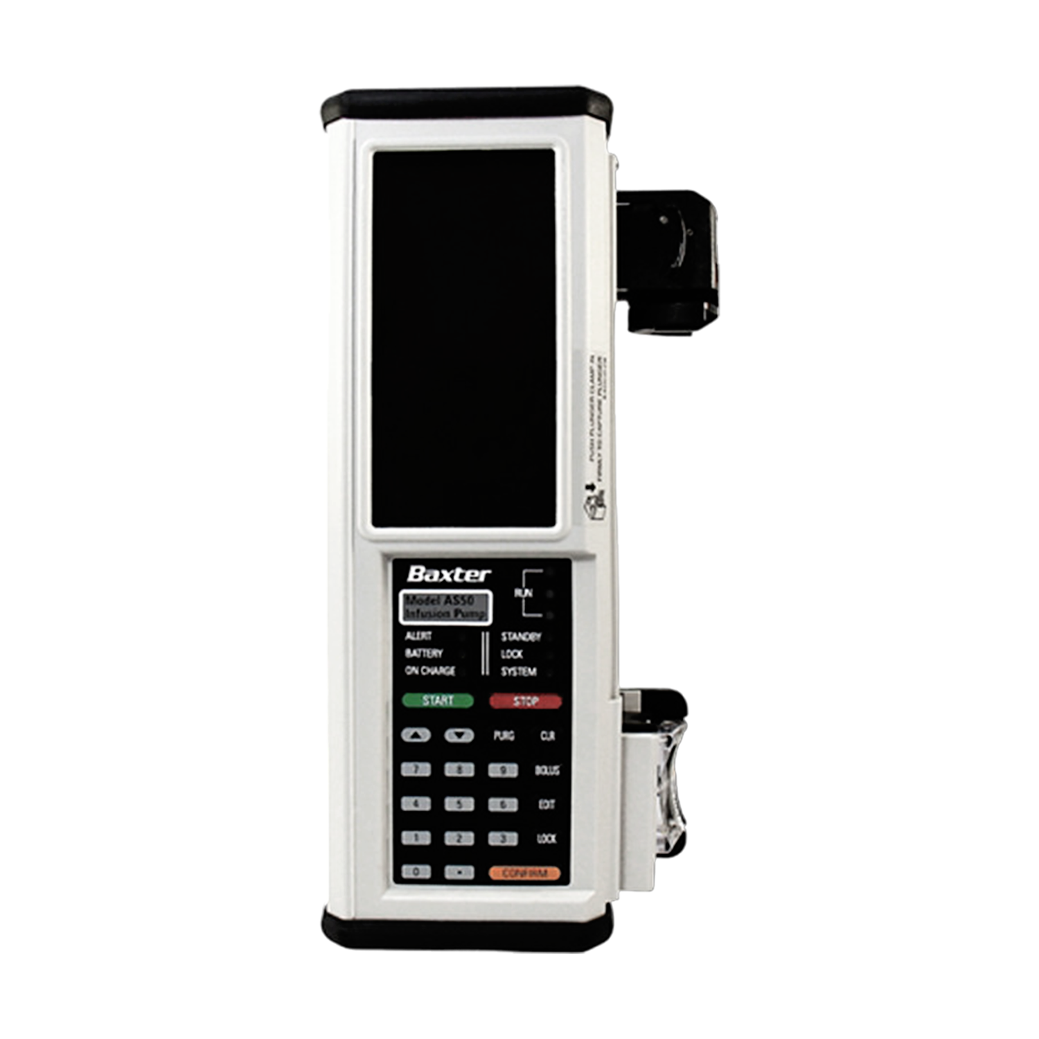 The Baxter AS40 is an infusion pump called Auto syringe, capable of delivering different types of infusions. It offers both continuous and intermittent infusion solutions, making it suitable for intravenous, intra-arterial, and epidural infusions. The Baxter syringe pump allows users to program flow rates ranging from 0.01 to 438 mL/hr. Additionally, it comes equipped with a customizable drug library and a rechargeable battery that can last up to 12 hours. The Bater As-40 is compatible with a wide range of standard disposable syringes, varying in size from 1 mL to 60 mL. Moreover, the syringe pump offers various configurable options, including syringe manufacturer selection, automatic syringe size recognition, selectable infusion modes, maximum infusion rates, and occlusion pressure sensitivity.