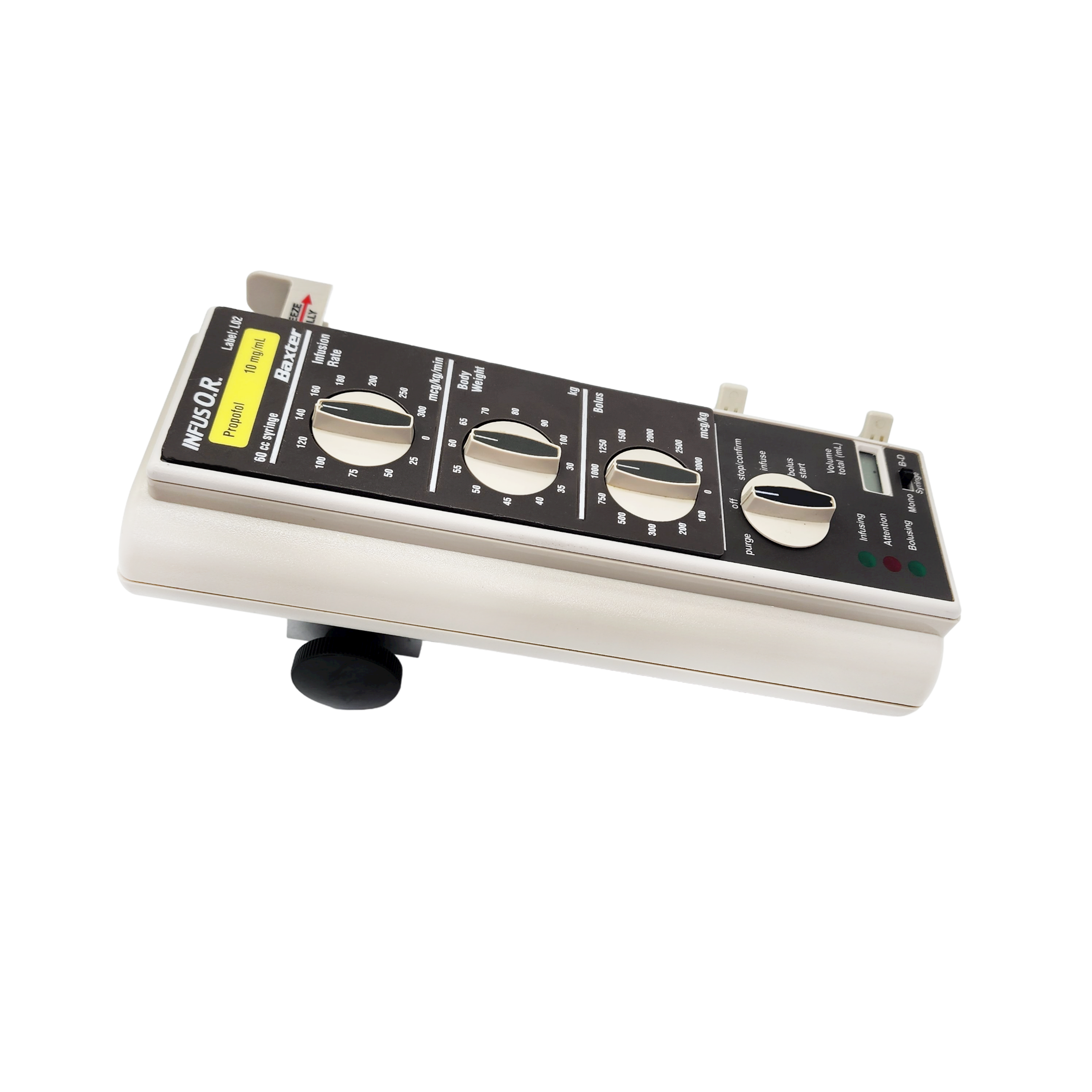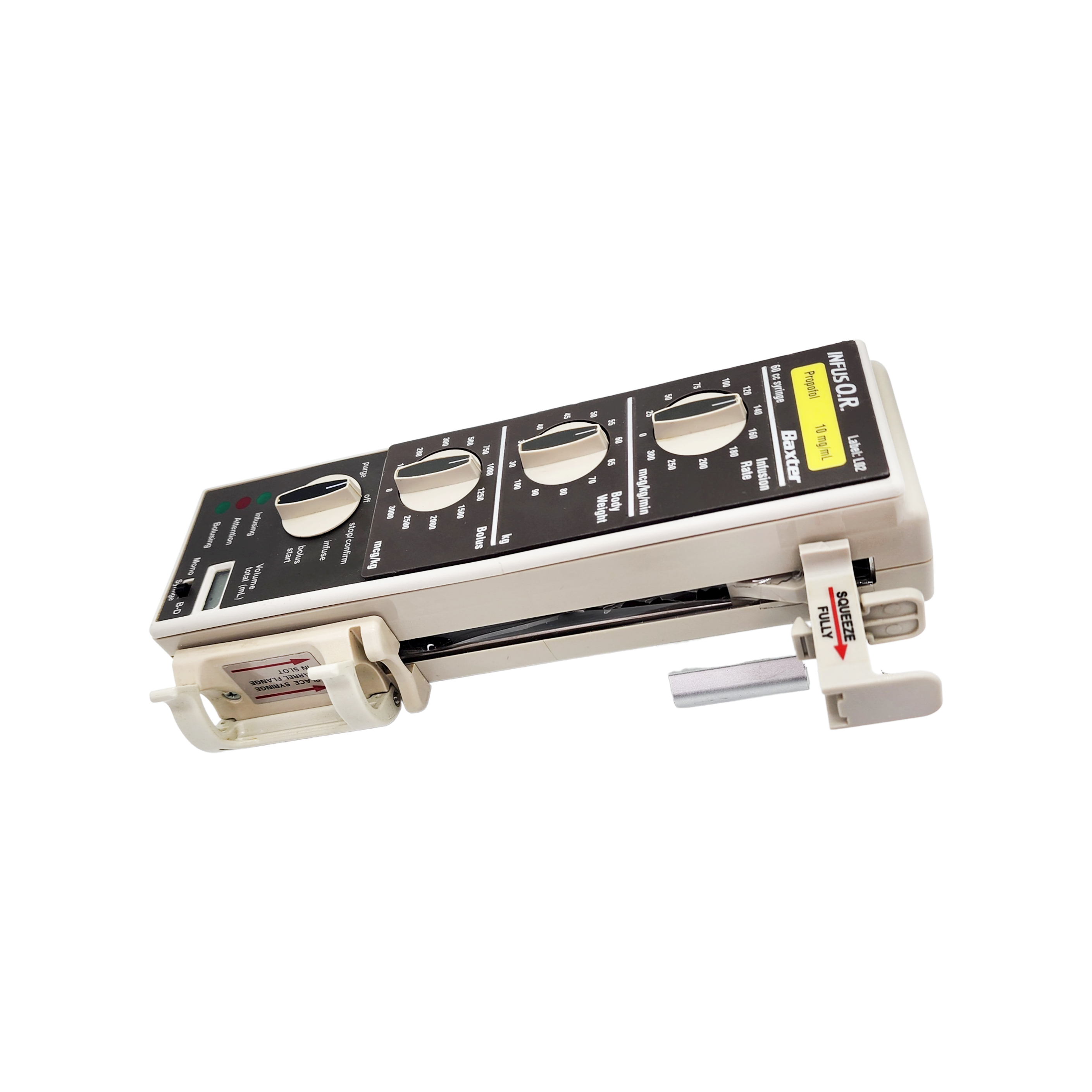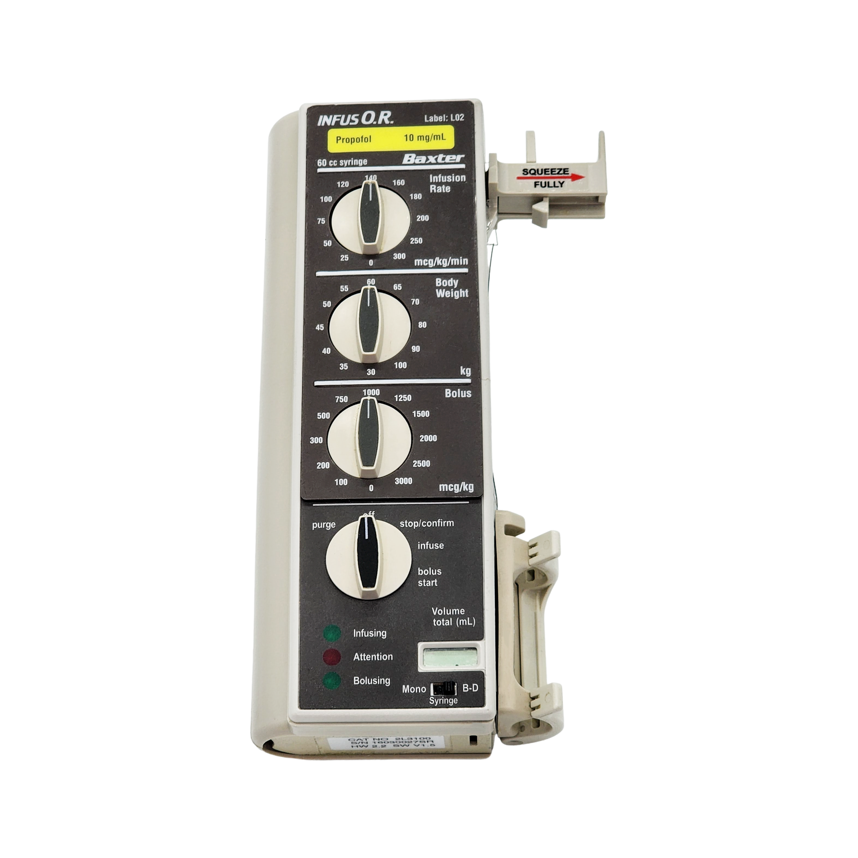 The Baxter Bard Infus O.R. Pump is a syringe infusion device that will aid in the administration of many intravenous agents given during anesthetic procedures. It provides for the convenient delivery of narcotics, muscle relaxants, and vasoactive drugs through the SMART LABEL System and is an excellent device for outpatient surgical settings.