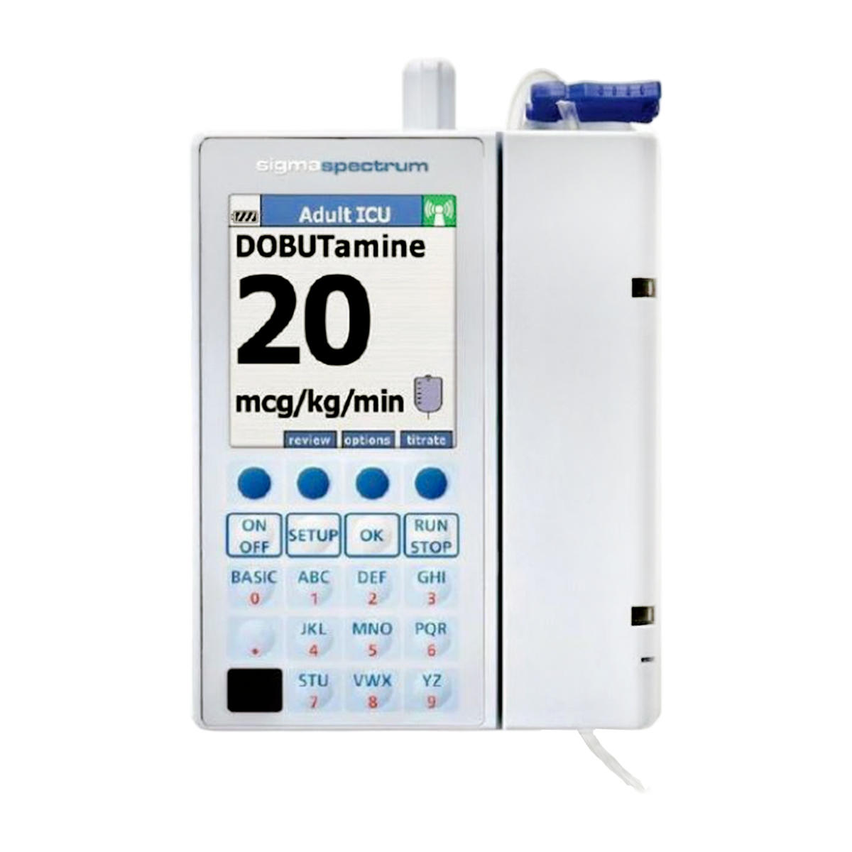 The Baxter Sigma Spectrum Infusion pump is a compact, lightweight, and user-friendly device. Soma provides this Baxter infusion pump with either software version 6.05 or 6.02. Its wireless connectivity enables seamless integration of data into your hospital's existing EMR system. The Sigma Spectrum is fully compatible with standard gravity IV sets supplied by Hospira and various other companies. When operating on battery power, the I.V. pump can sustain a minimum of 4 hours with average usage on a fully charged battery. It incorporates several safety features including the Dose Error Reduction Software (DERS) with both hard and soft limitations, default dose rates, and multiple dosing modes. Another infusion pump offered by Baxter is the Baxter Spectrum IQ.