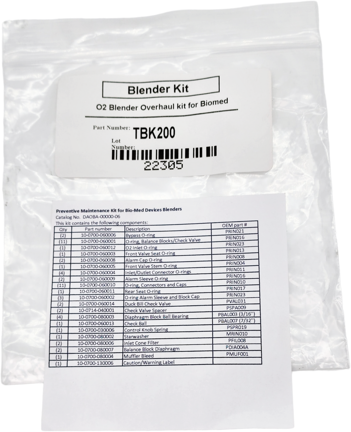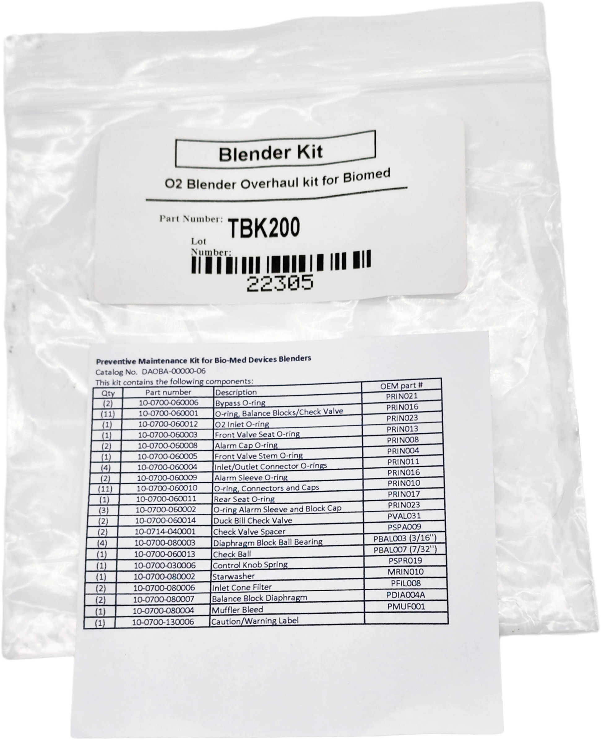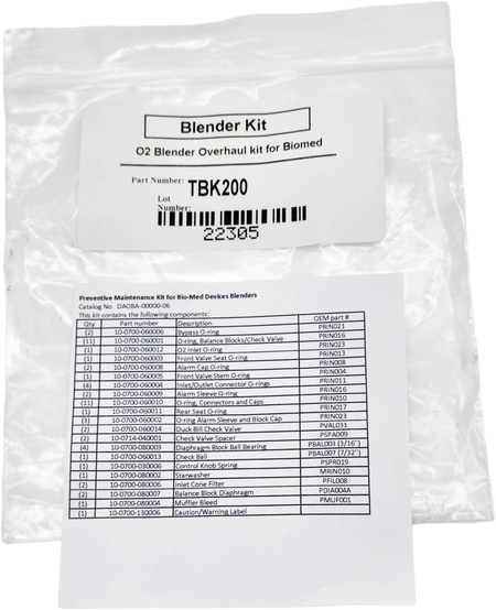 Preventive Maintenance Kit for Bio-Med Devices Blenders Catalog No. DAOBA-00000-06
