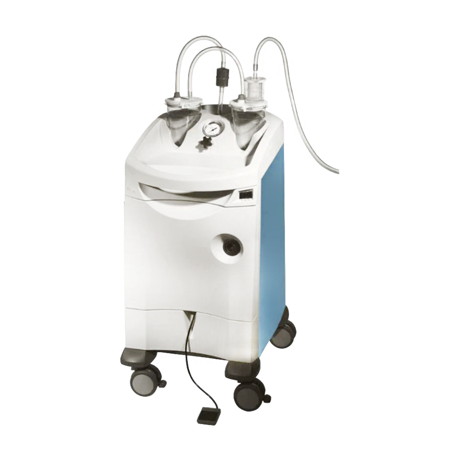 The system includes the option for the physician to operate suction with a foot pedal and is equipped with a dual collection bottle system and a safety trap for automatic shut off.