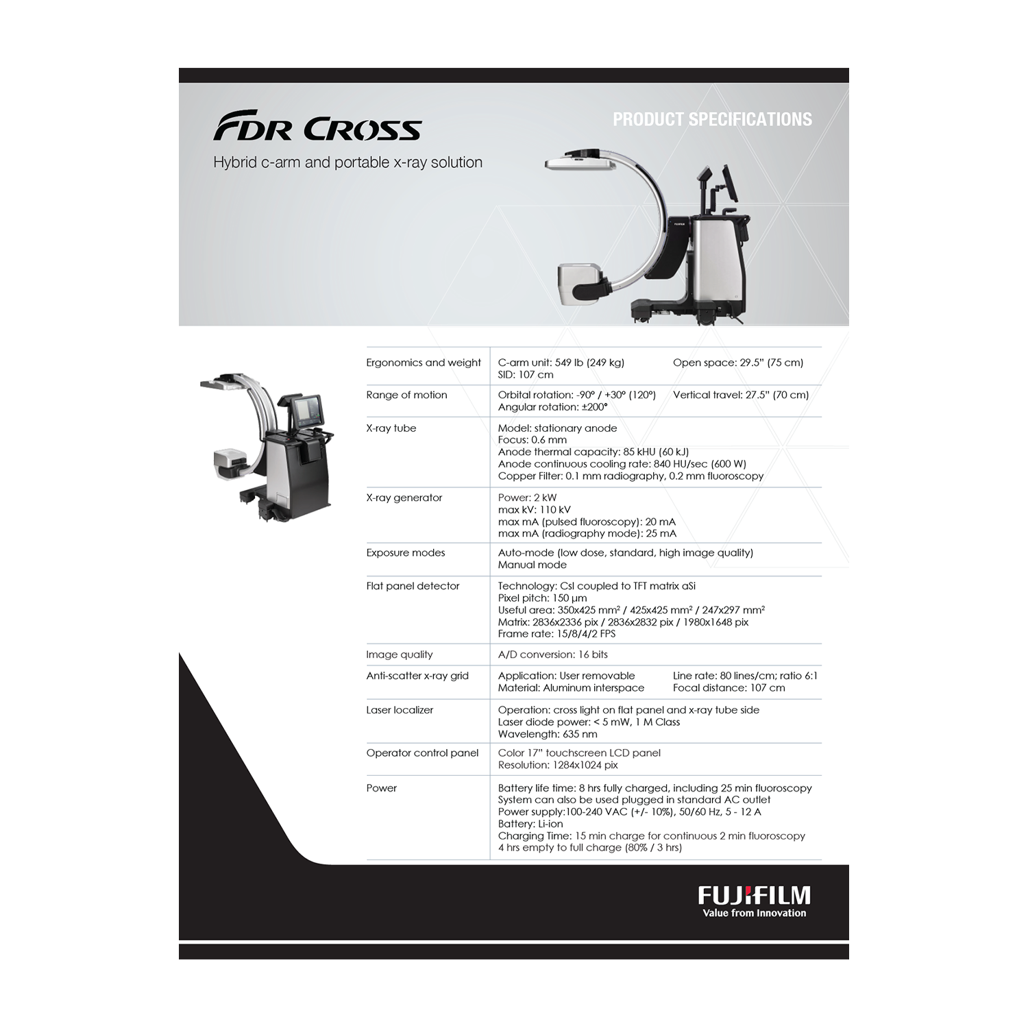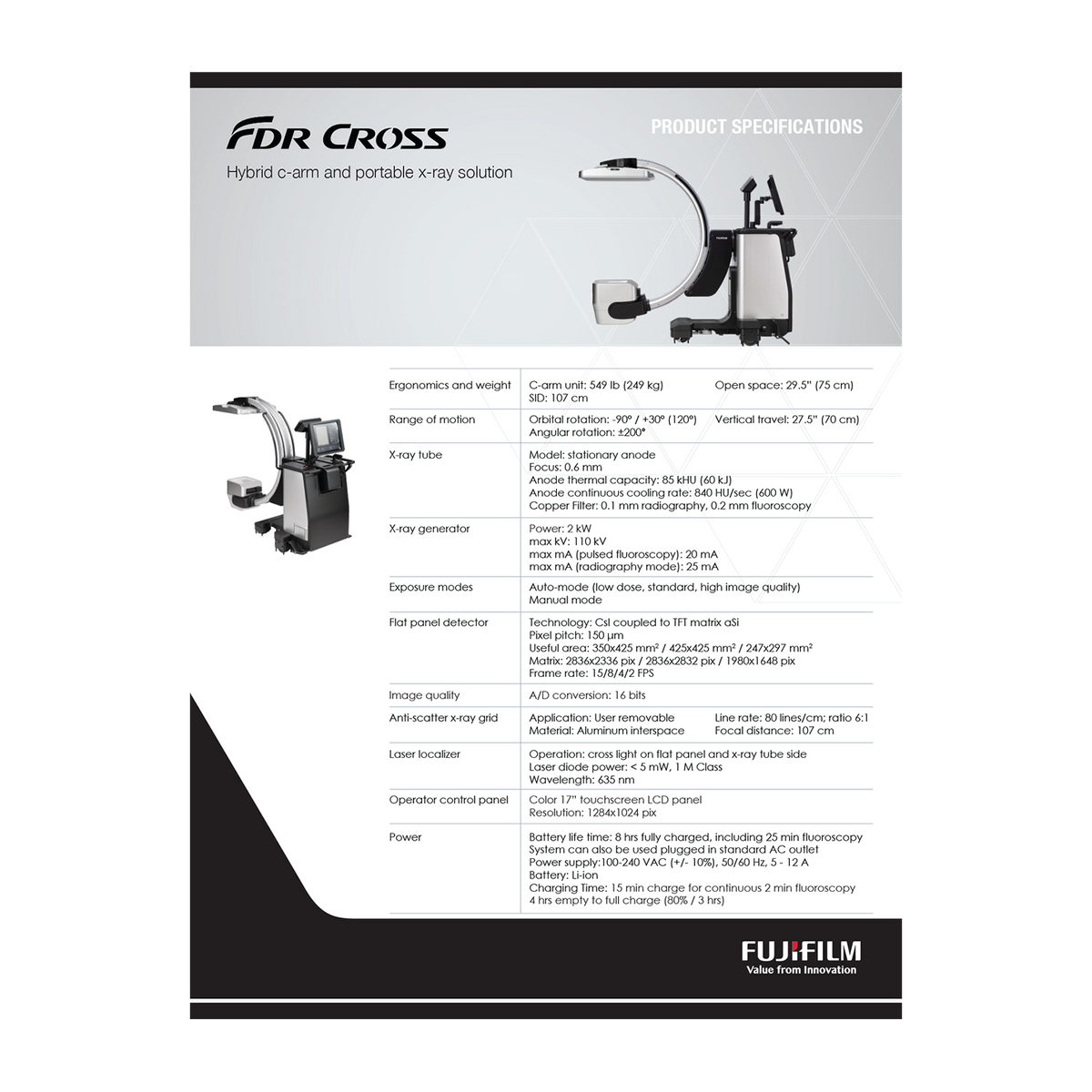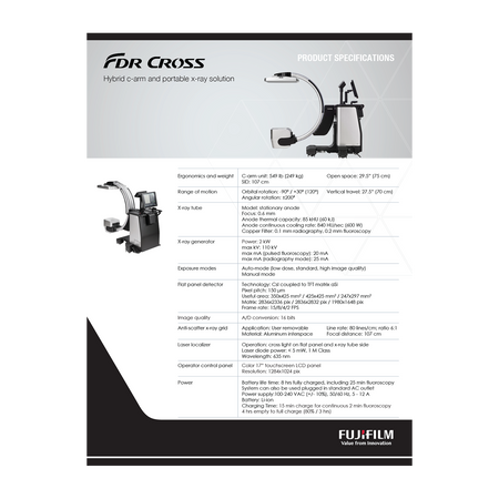 Step into the next generation of medical imaging with the Fuji FDR Cross, where advanced c-arm technology converges with the convenience and adaptability of portable x-ray systems.