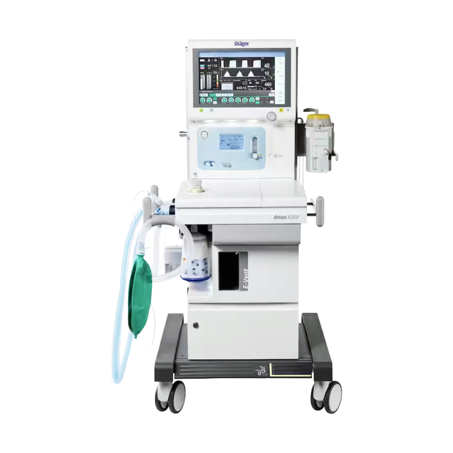The Dräger Atlan A350 is an advanced anesthesia machine designed to provide high-precision ventilation and support lung-protective ventilation strategies.