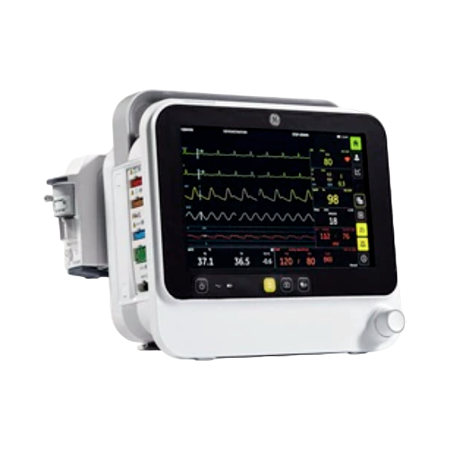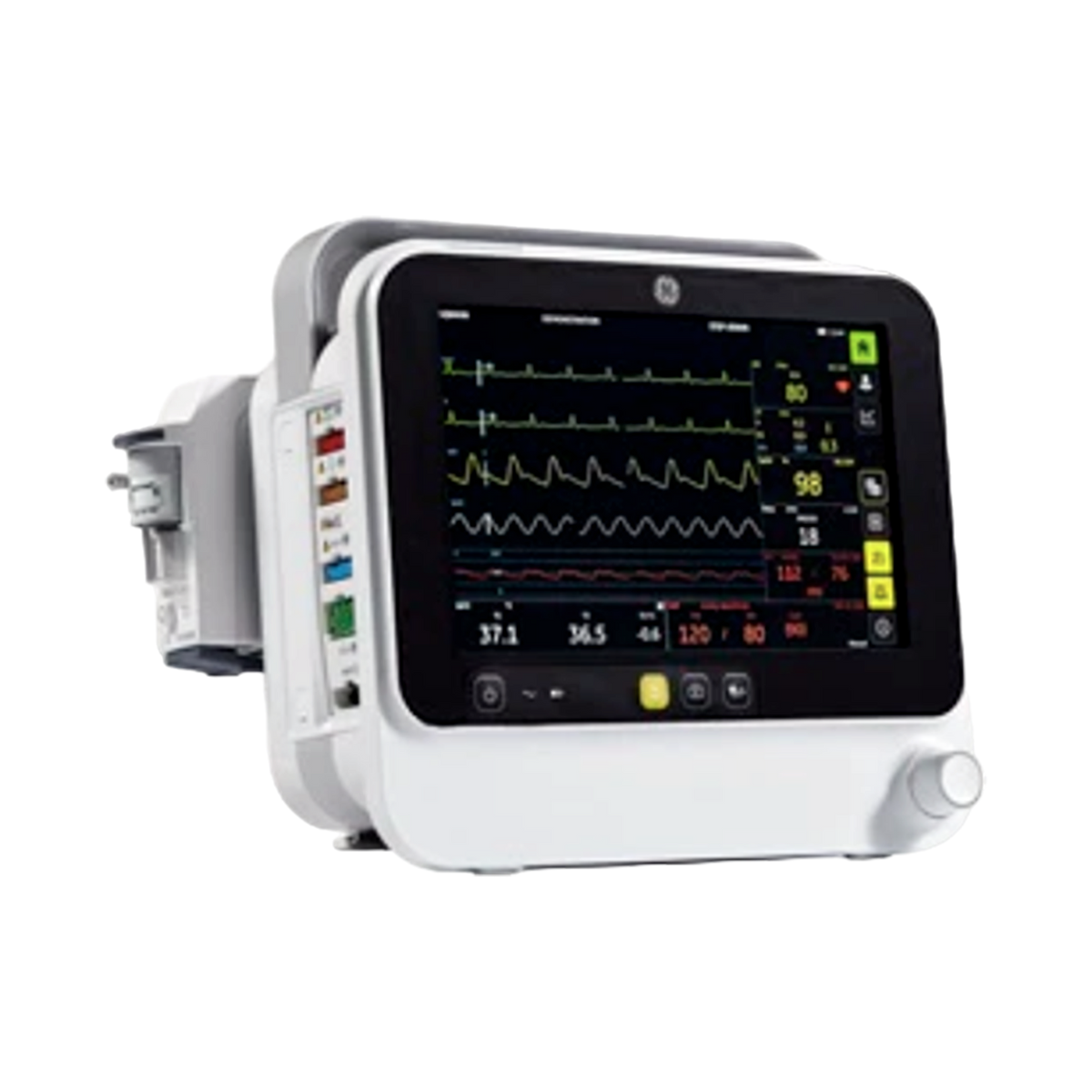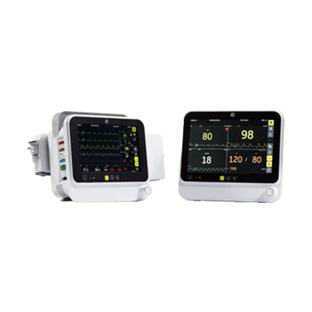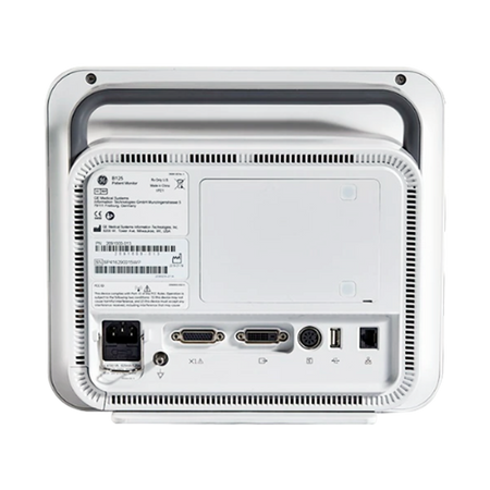 The GE B125 stands as one of GE's latest additions to patient monitors. This monitor is highly regarded for its straightforward design, featuring a spacious 12-inch captive touch screen. This design enhances the ability of caregivers to swiftly interpret and adjust patient data as needed. The large, easy-to-read numerical values and continuous waveforms are visible from various angles, facilitating efficient monitoring.
