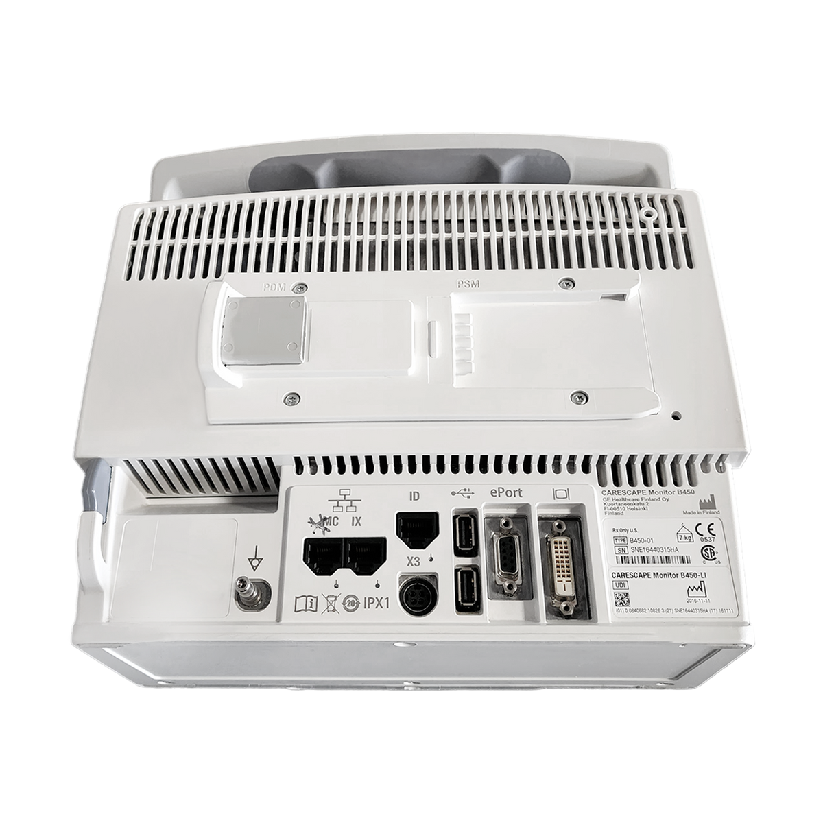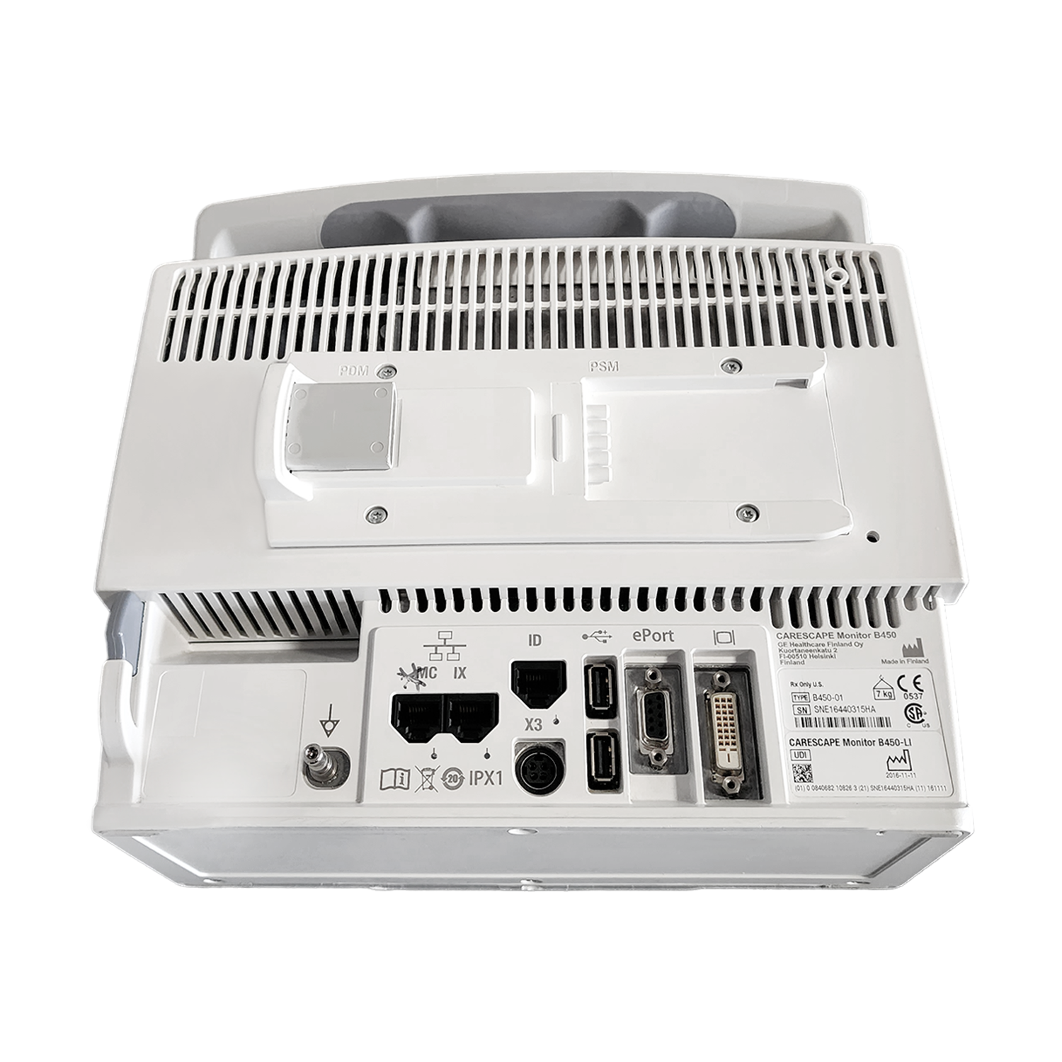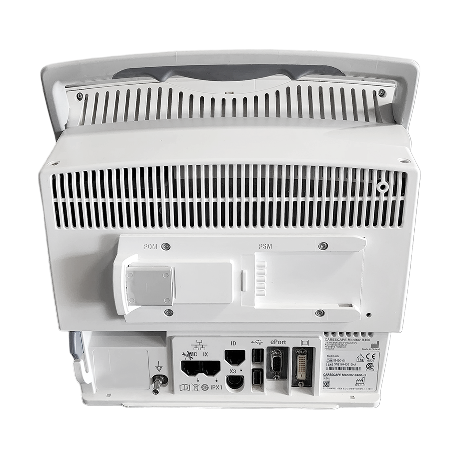 The GE CareScape B450 serves as an excellent bedside patient monitor, particularly for intra-hospital transport. Its wireless capabilities, detachable modules, and battery power ensure uninterrupted monitoring and data acquisition during patient transfer. Connecting the B450 Monitor to a hospital's network allows for data viewing via an s/5 connection or through a monitoring station like the CareScape CIC Pro network. This monitor was meticulously crafted, incorporating features and functionality from the B650 and B850 models, thereby enabling comprehensive hemodynamic and respiratory monitoring. With its user-friendly touchscreen interface, the B450 monitor offers a diverse range of clinical parameters, including airway gases, ECG analysis, non-invasive blood pressure, and SpO2 measurement.