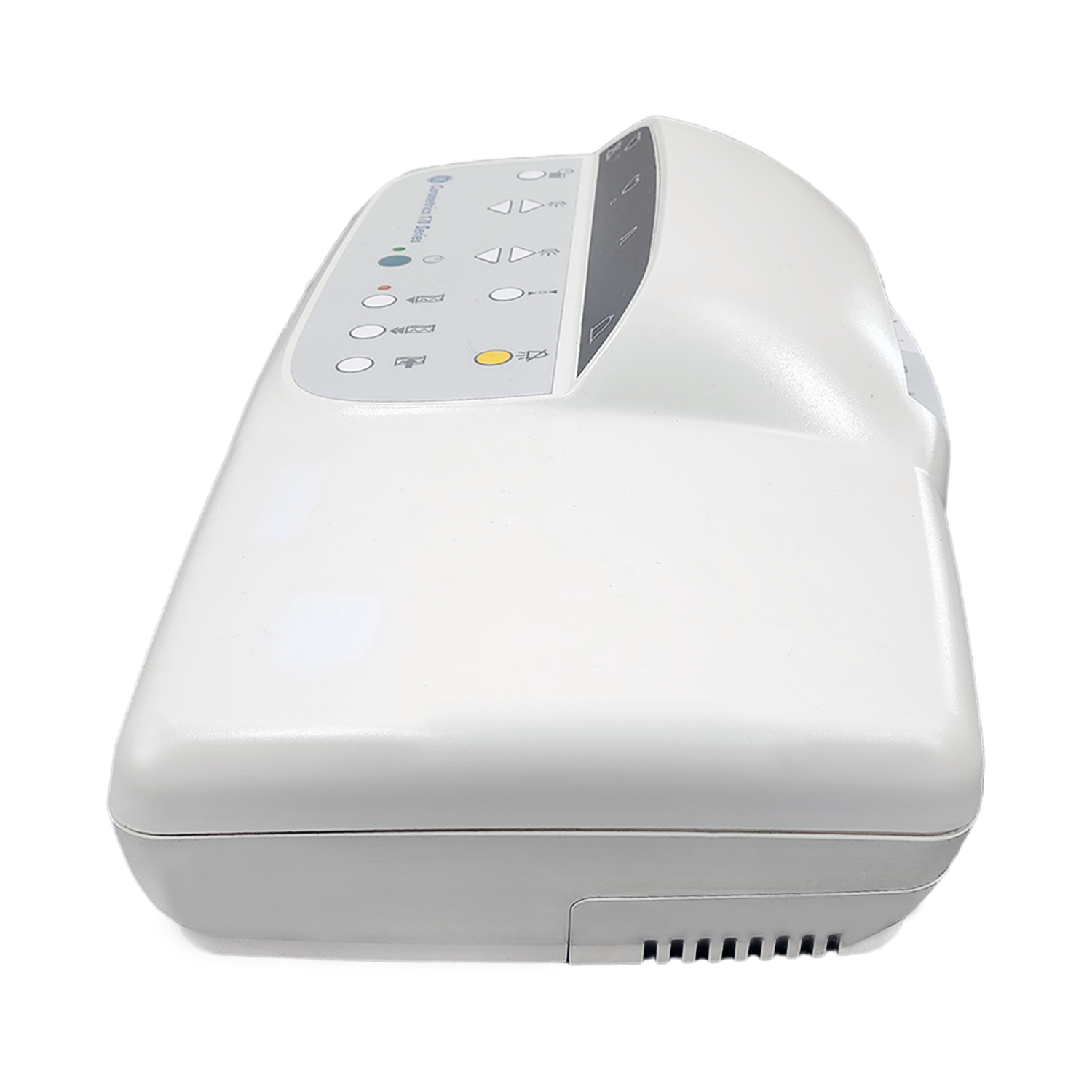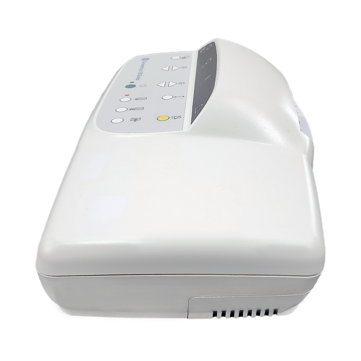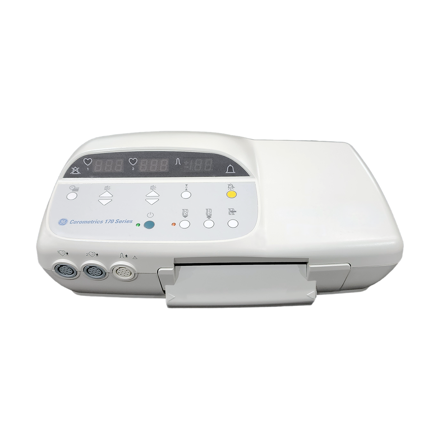 The GE Corometrics 170 Series functions as a fetal monitor suitable for medical offices and hospitals alike. This monitor, known as the 170 Series Fetal Monitor, is designed to be lightweight while providing effective and accurate monitoring of both the mother and baby simultaneously. It offers a non-invasive method for tracking the baby's heart rate, utilizing a 9-crystal Pulsed Doppler Ultrasound technology with a wide beam to detect the fetal heart rate. Additionally, it includes high and low heart rate alarms for monitoring TOCO and fetal movement.