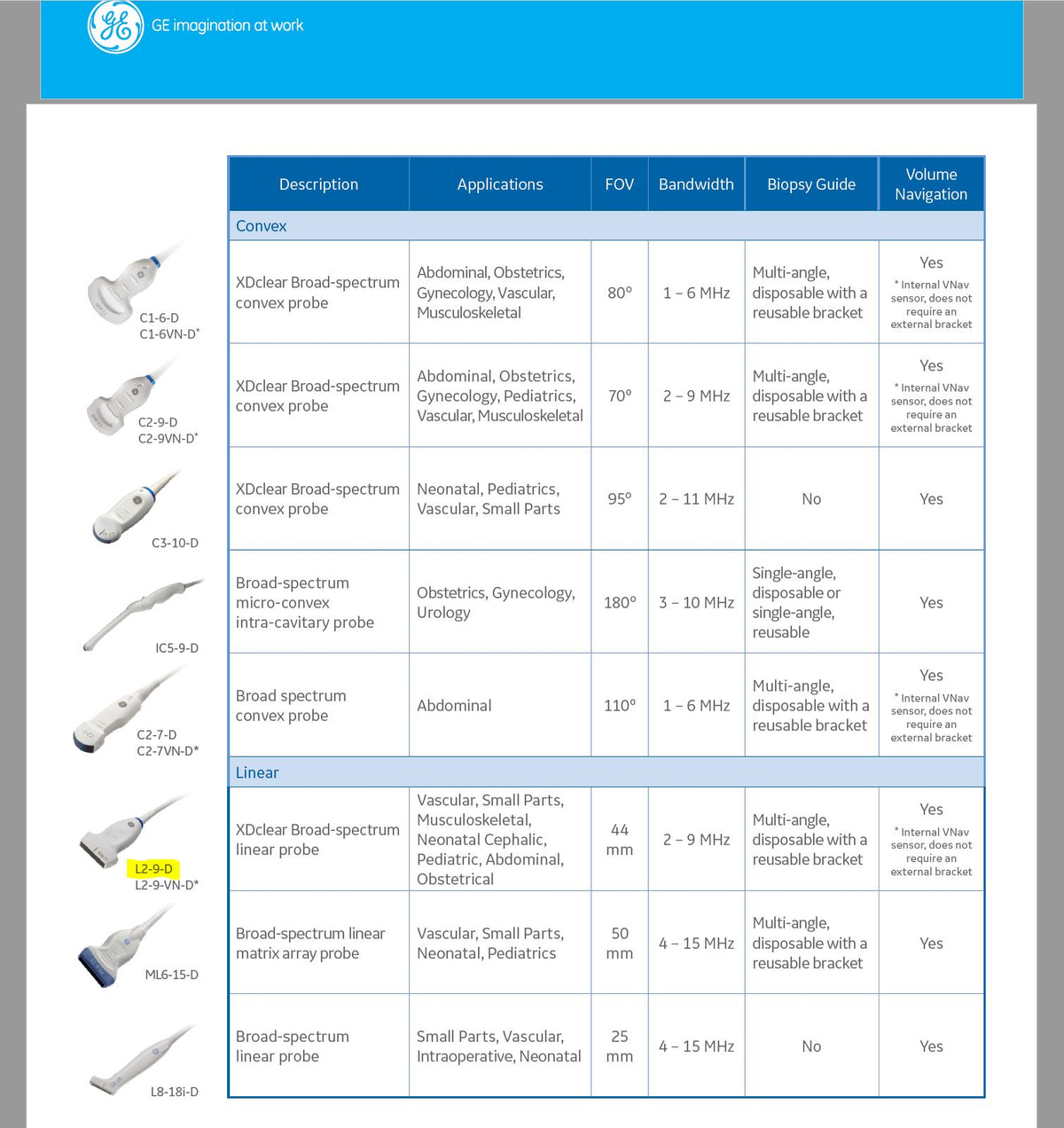 - Applications: Vascular, Small Parts, Musculoskeletal, Neonatal Cephalic, Pediatric, Abdominal, Obstetrical