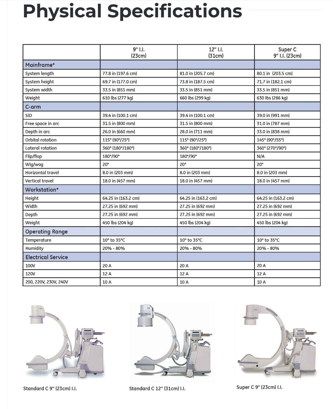 Additionally, the OEC 9800 can be equipped with various software packages, such as the General Surgical Package (GSP), Expanded Surgical Package (ESP), Vascular Package, Neurovascular Package, and Cardiac Package. The GE OEC 9800 is widely used in surgical facilities and operating rooms globally, making it a reliable and versatile choice for diagnostic and interventional applications.