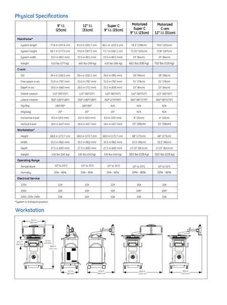 - 9” (23 cm) I.I., 12” (31 cm) I.I.