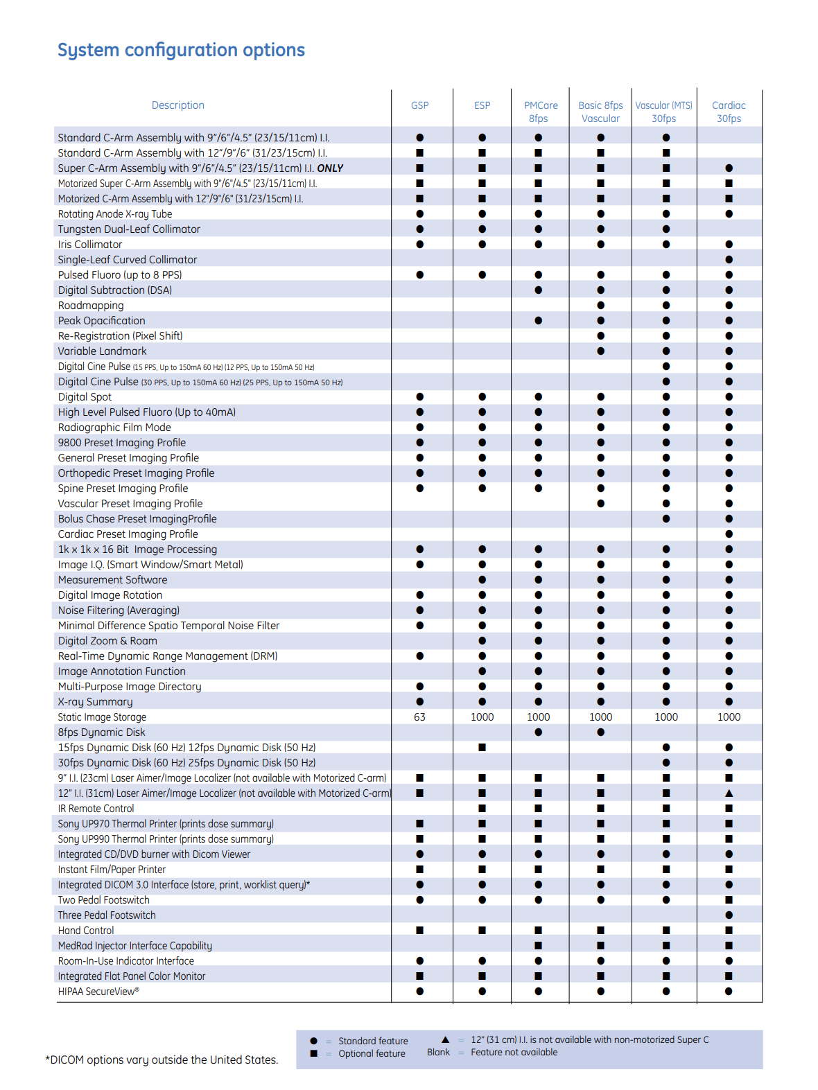 - Both systems have similar X-ray tube, generator, image intensifier, steering, hardware, and C-arm movements.