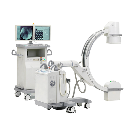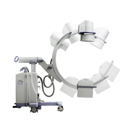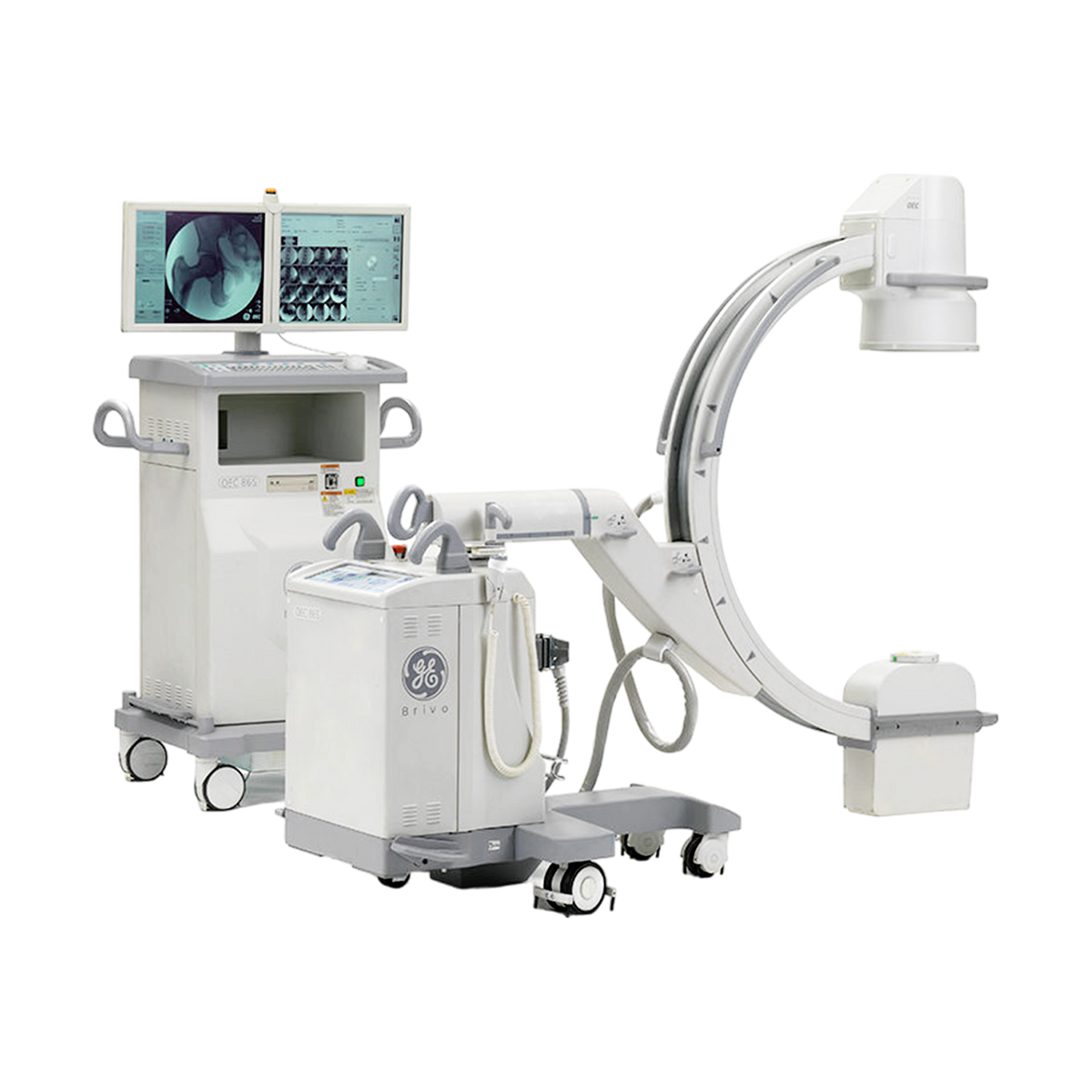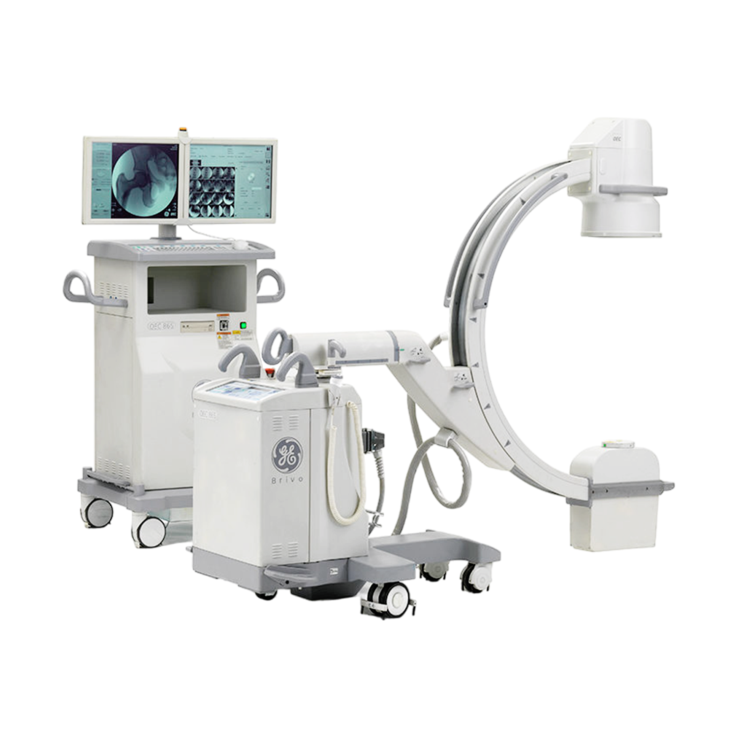 The GE OEC Brivo Plus is a C-arm system that incorporates automated features to enhance productivity and reduce uncertainty throughout the surgical process. It is designed to deliver reliable and easy-to-use results, from setup to completion. The system's intelligent point-and-shoot technology enables it to bring images into sharp focus at the lowest reasonably achievable dose, reducing the learning curve, the need for retakes, and patient repositioning.