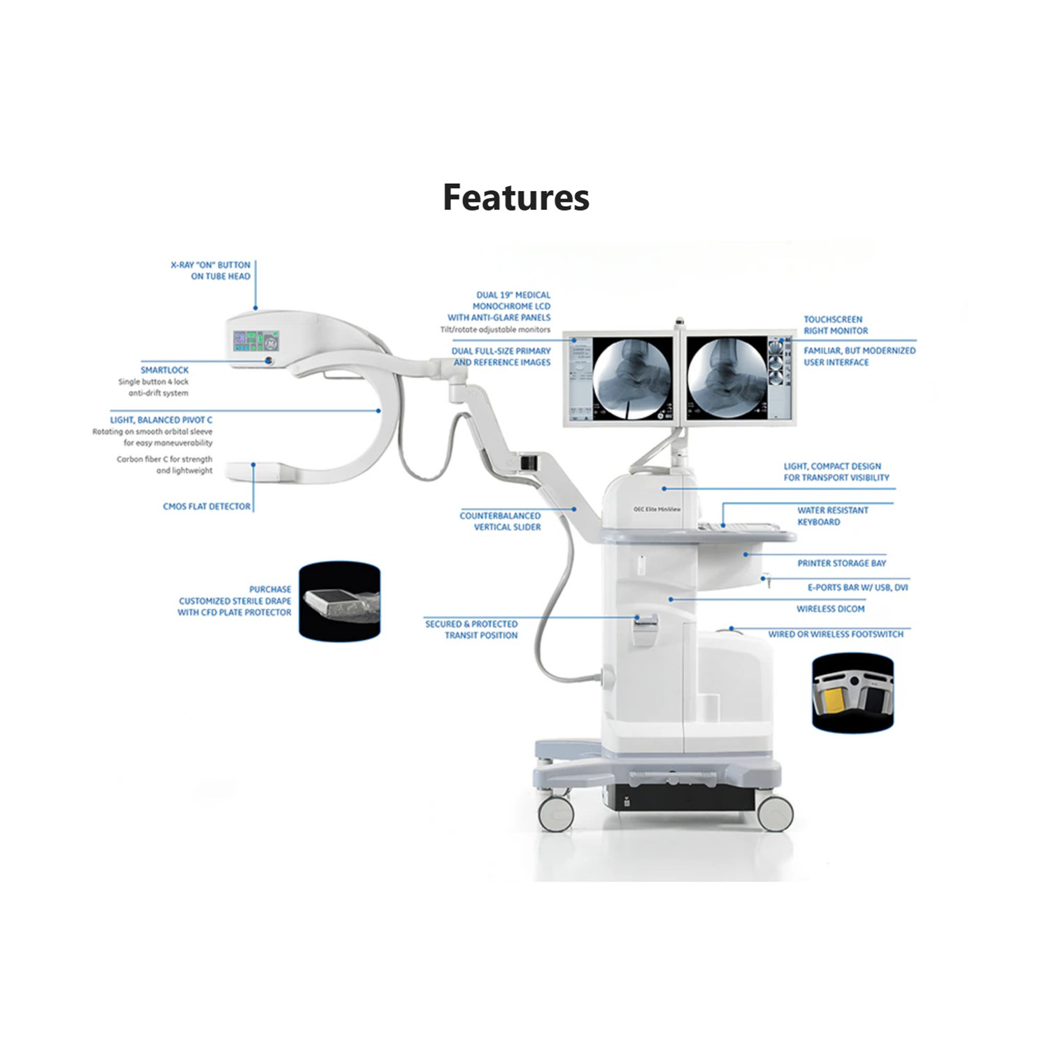 In summary, the GE OEC Elite MiniView is a versatile mini C-arm system that prioritizes ease of use, high-quality imaging, and efficient workflow, making it a valuable tool for healthcare professionals in diverse clinical settings.