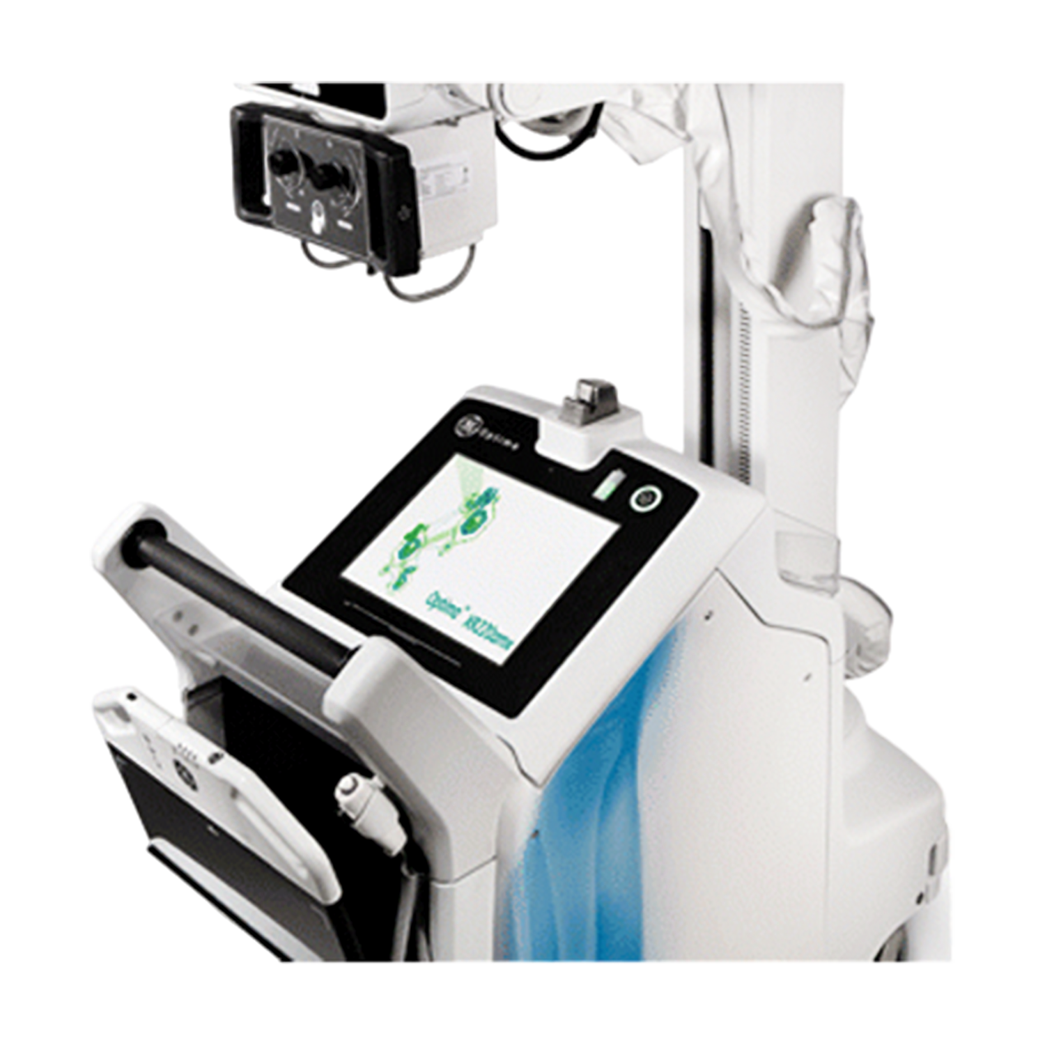 The Optima XR220amx is a self-contained, battery-operated mobile digital X-ray imaging system specifically engineered to conduct radiographic examinations at the point of care, eliminating the need to transport patients to the radiographic room when it is impractical or unsafe to do so.