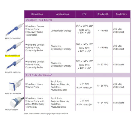 - Compatibility: Voluson E6, GE Voluson E8, GE Voluson E10, GE Logiq S8, GE Logiq S8 w/ XDClear 2.0, GE Logiq E9, GE Logiq E9 w/ XDClear 2.0