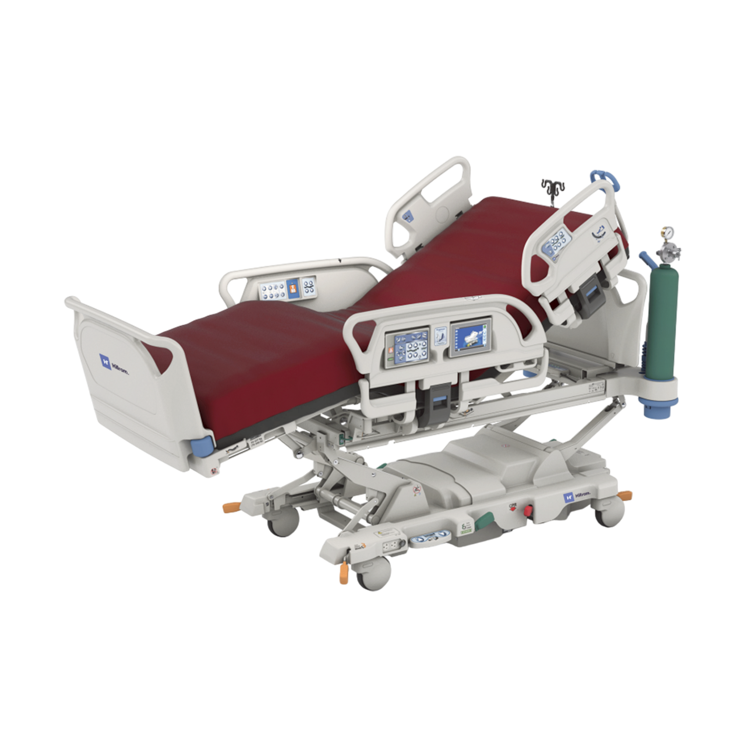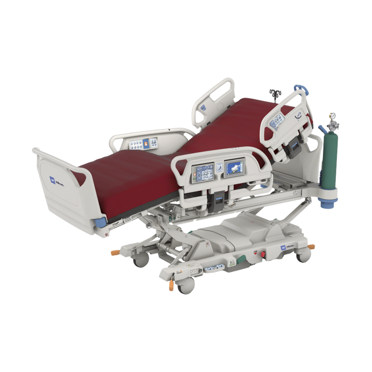 - Safety Features: The bed is equipped with a three-mode bed exit alarm to alert caregivers, a head-of-bed angle alarm for protocol compliance, and StayInPlace technology to prevent patient sliding.
