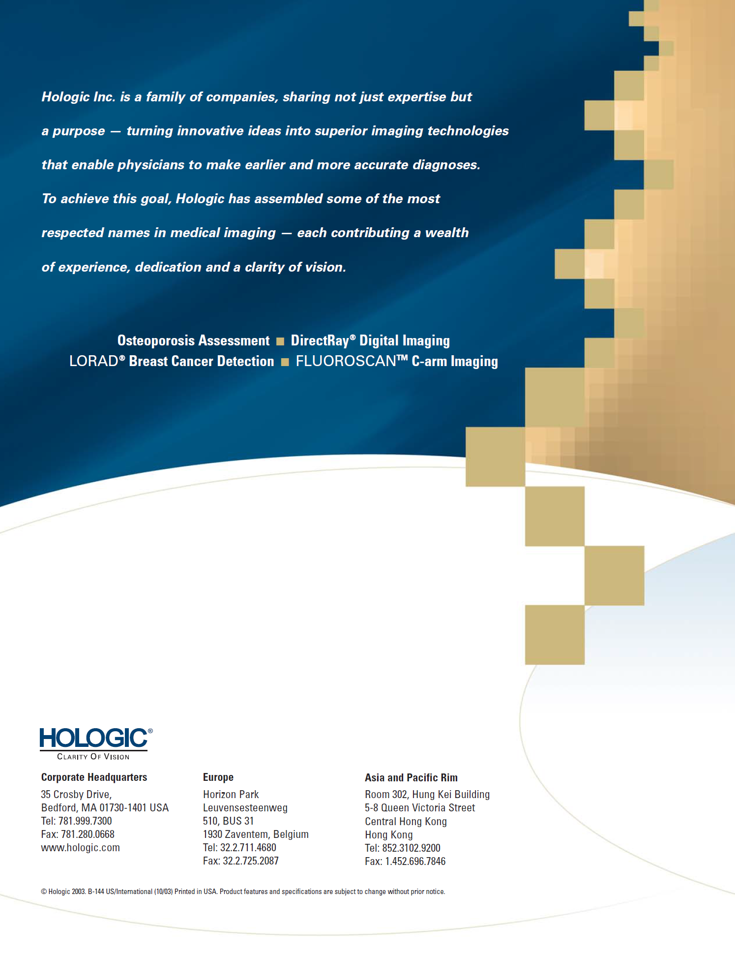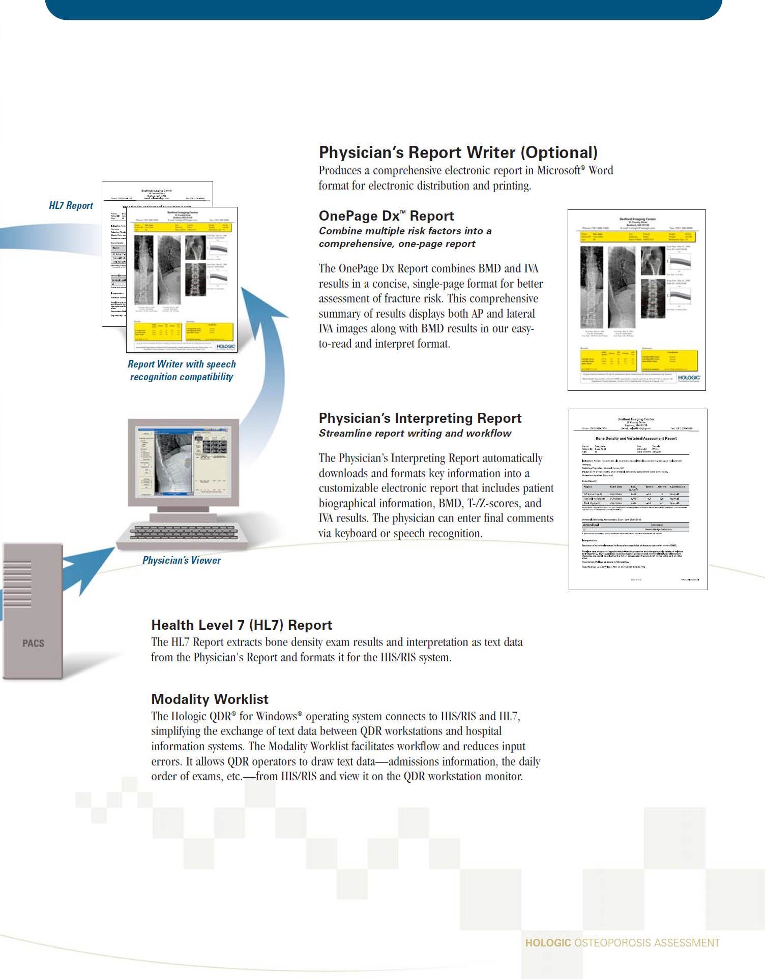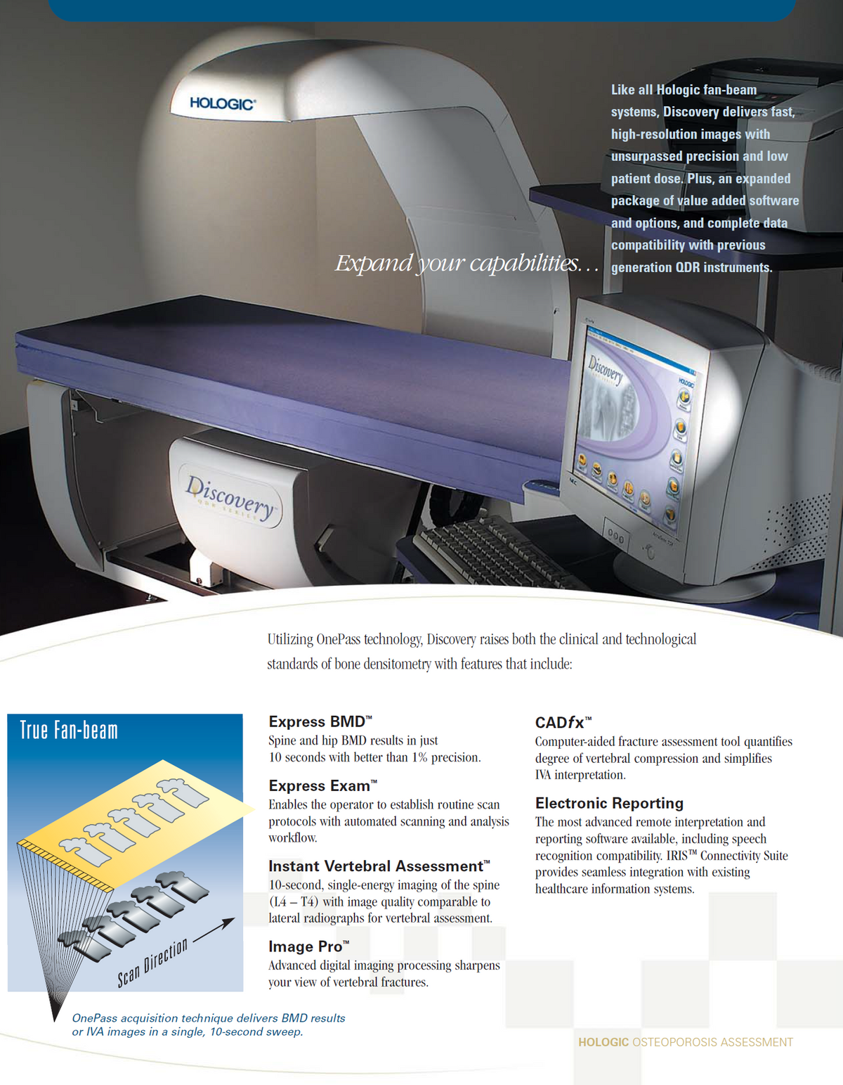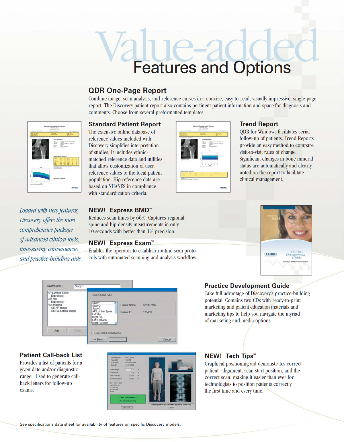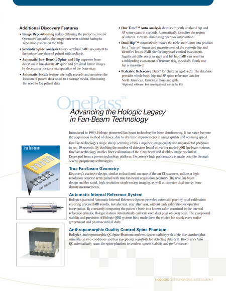 - Automatic, continuous calibration using Hologic’s patented Automatic Internal Reference System
