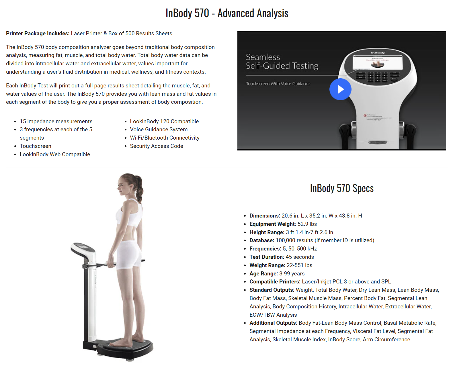 The InBody 570 body composition analyzer offers a comprehensive analysis of body composition, going beyond traditional assessments by measuring fat, muscle, and total body water. This includes the division of total body water data into intracellular and extracellular water, which is valuable for understanding fluid distribution in medical, wellness, and fitness contexts. The results of each InBody Test are presented in a full-page report, detailing the muscle, fat, and water values of the individual. Additionally, the InBody 570 provides lean mass and fat values for each segment of the body, offering a thorough assessment of body composition.