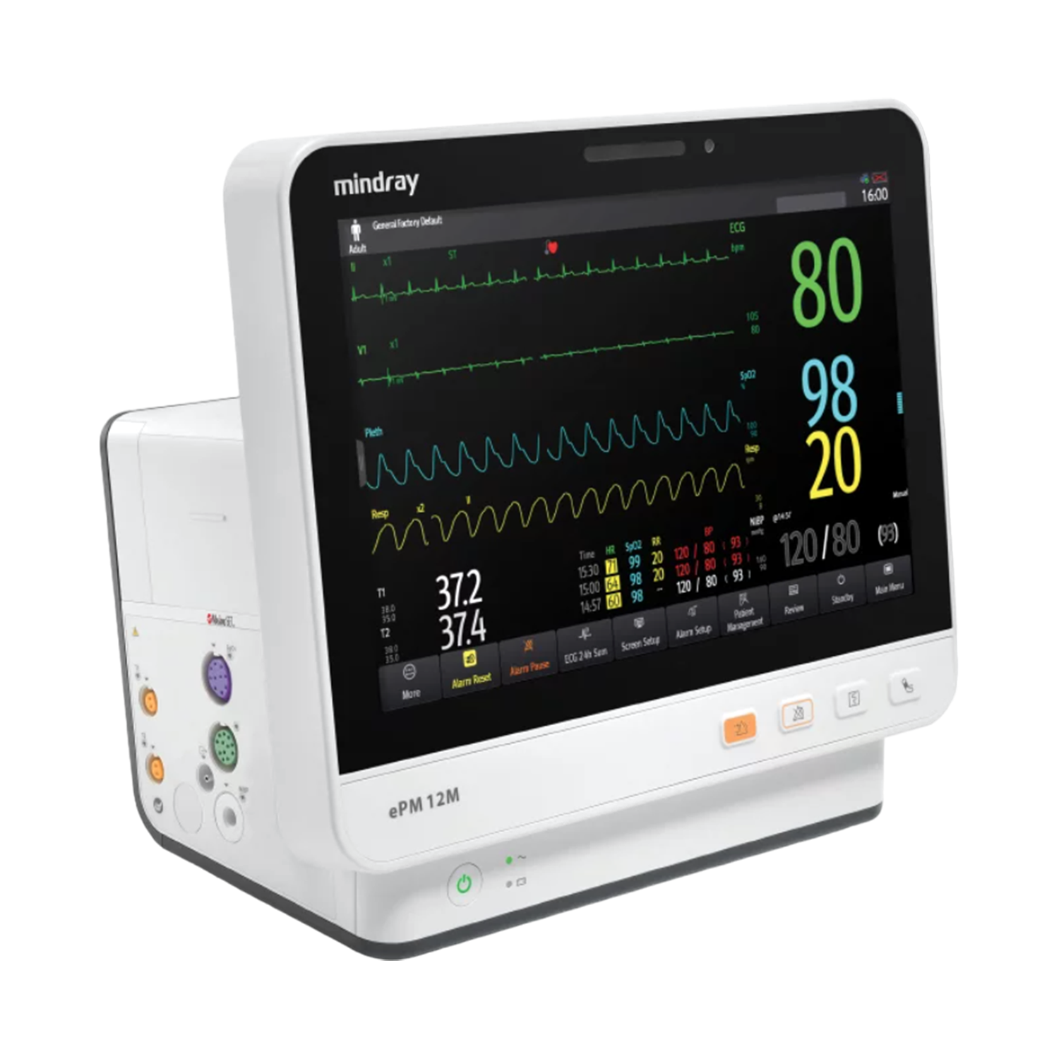 – ePM 12M, 10 waveforms - Integrated parameters include 3, 5-lead ECG, Masimo SET® SpO2, NIBP, respiration, temperature