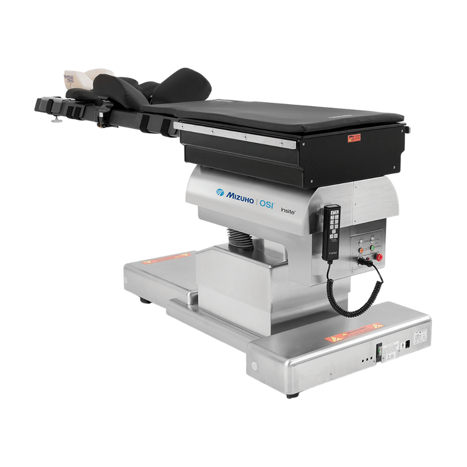 - Backlit hand pendant controls all table functions, including floor locks, height, lateral roll, Trendelenburg/ reverse Trendelenburg and return to level