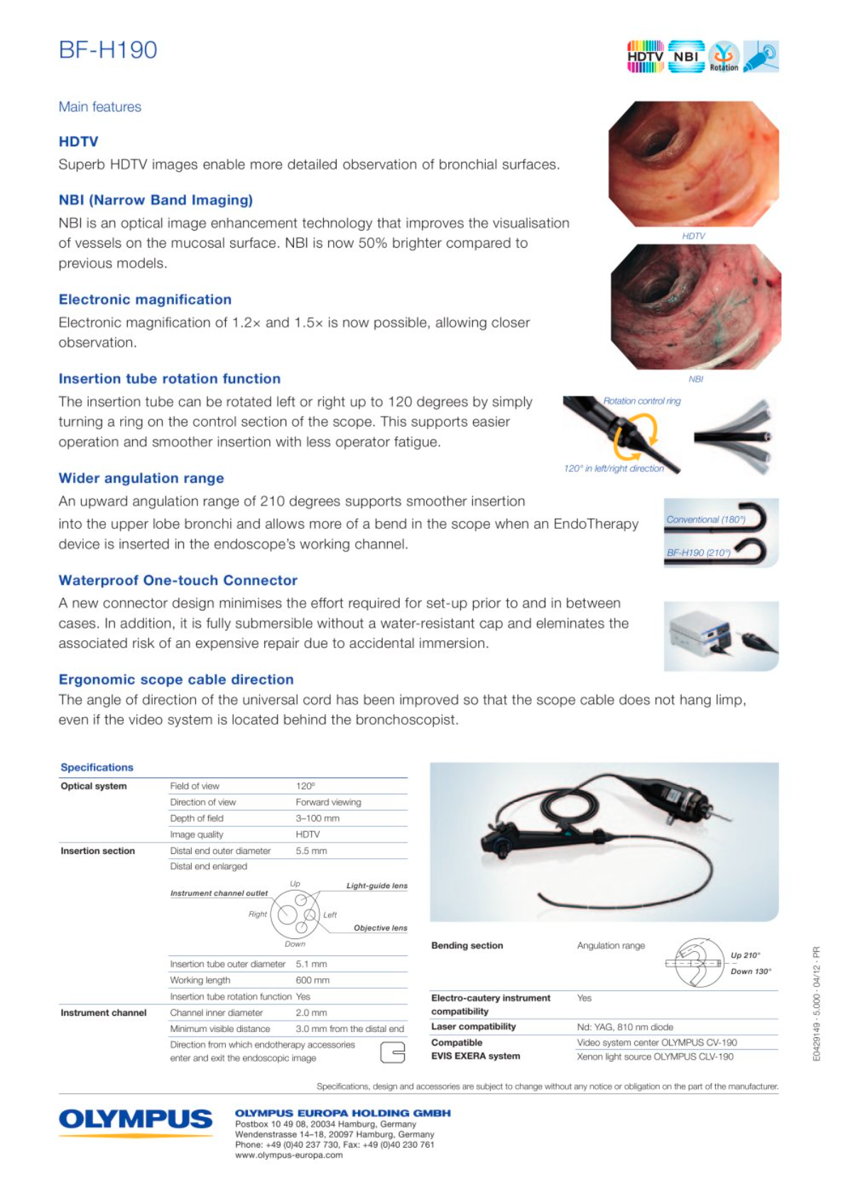 - The BF-H190 is compatible with the Olympus EVIS EXERA system, including the video system center OLYMPUS CV-190 and the xenon light source OLYMPUS CLV-190.