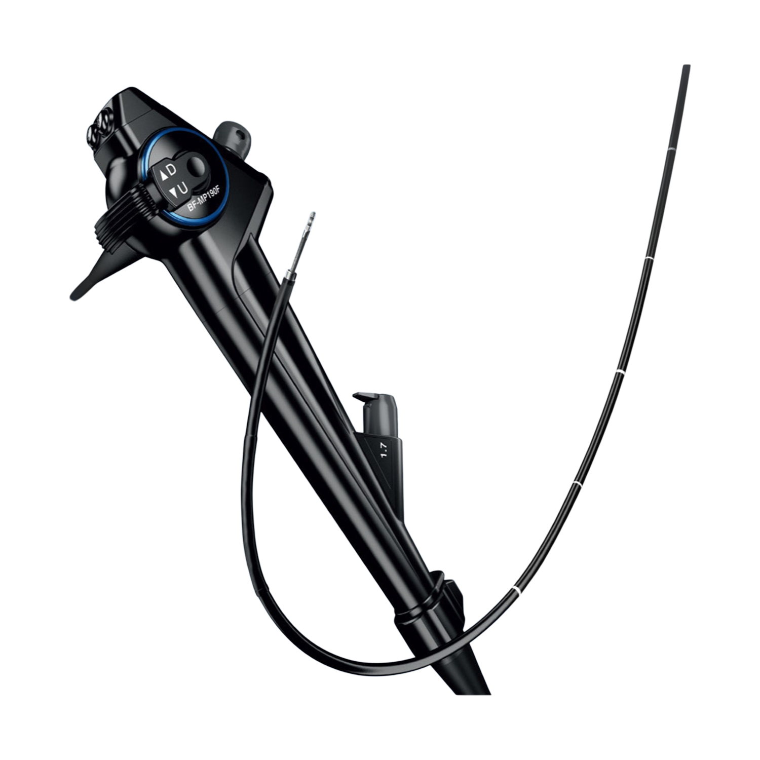 The Olympus BF-MP190F is an ultra-slim, fully rotatable diagnostic bronchoscope designed for enhanced access to smaller airways and distal lesions in the lungs.