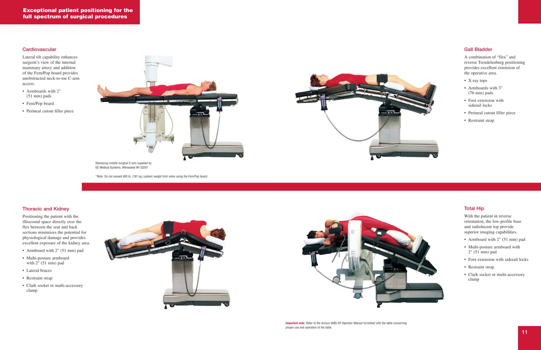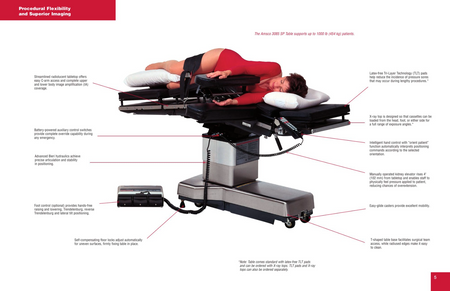 - Smooth functioning hydraulic system designed to provide safer, ergonomically structured movement for surgeon access to the operative site