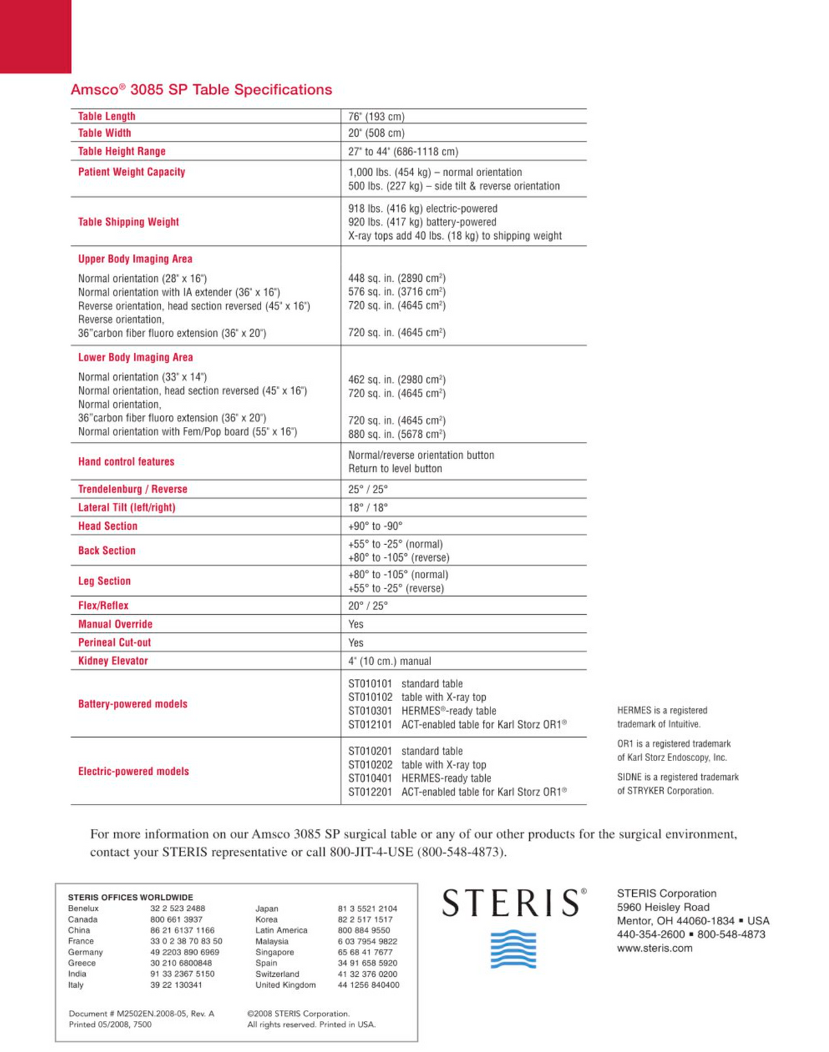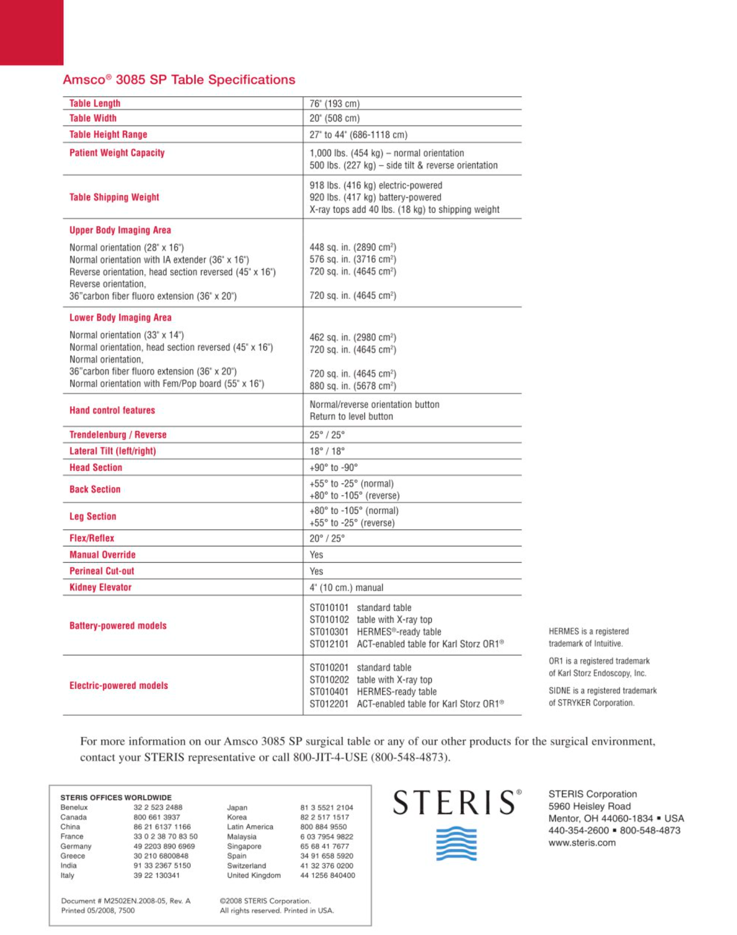 Steris/AMSCO 3085 SP O.R. General Surgical Table