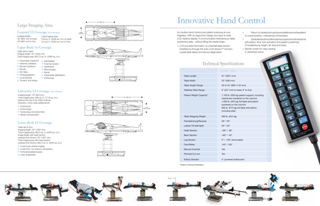 - Radiolucent 18″ sliding top for total body imaging (43″ upper and 43″ lower body C-arm access).