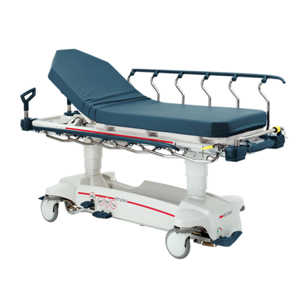 Stryker's innovative design for the 1007 (SM-104) M-Series stretcher has set a new standard for effective treatment and safe transport. The M-series stretchers are highly mobile and user-friendly, making them well-suited for fast-paced and rigorous environments such as the Emergency Department. These general-purpose stretchers also boast a 700 lb. (317.5kg) weight capacity, an increase from the typical 500lb weight capacity, making them one of the first bariatric stretchers available on the market. The Stryker 1007 SM104 M-Series Stretcher features a 30" patient surface, retractable fifth wheel for improved mobility, and four-sided brake and steer controls for flexibility. It also includes fold-down siderails, an optional knee gatch for added patient comfort, and a weight capacity of 700 lbs. The stretcher is ideally suited for Ambulatory Surgery Centers and offers stability, ease of movement, and various features to cater to the needs of caregivers and patients.