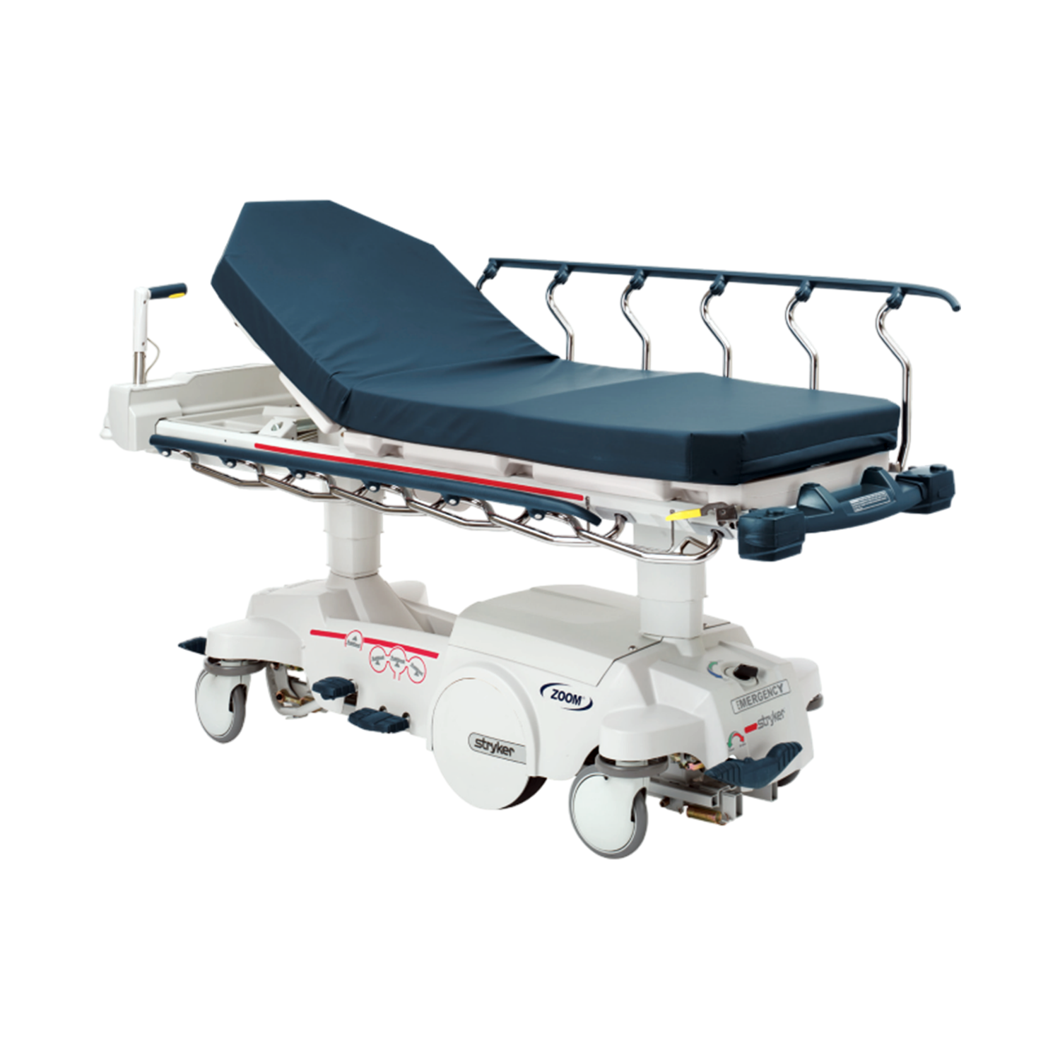 The Stryker Model 1025 M-Series Stretcher with ZOOM® is a general-purpose patient transport and treatment stretcher. It features a safe working load and is designed for quick and effective patient transport. The stretcher is part of Stryker's M-Series, known for its innovative design and versatility.