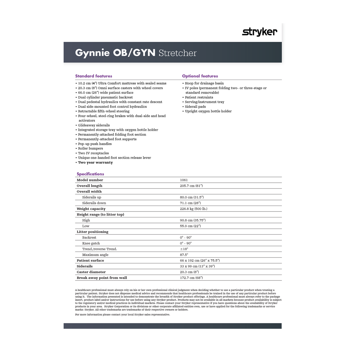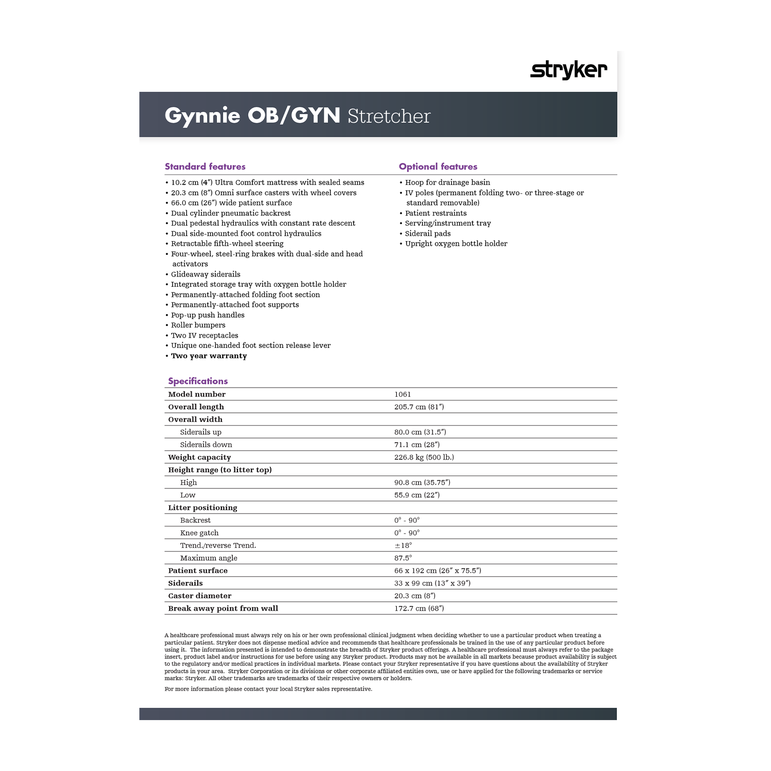 Stryker 1061 Gynnie OB/GYN Stretcher