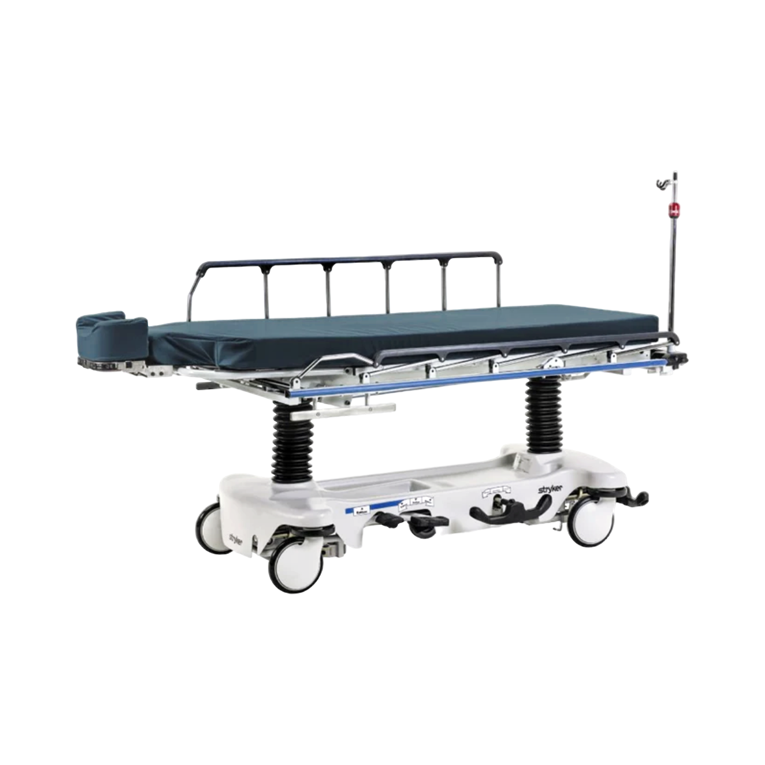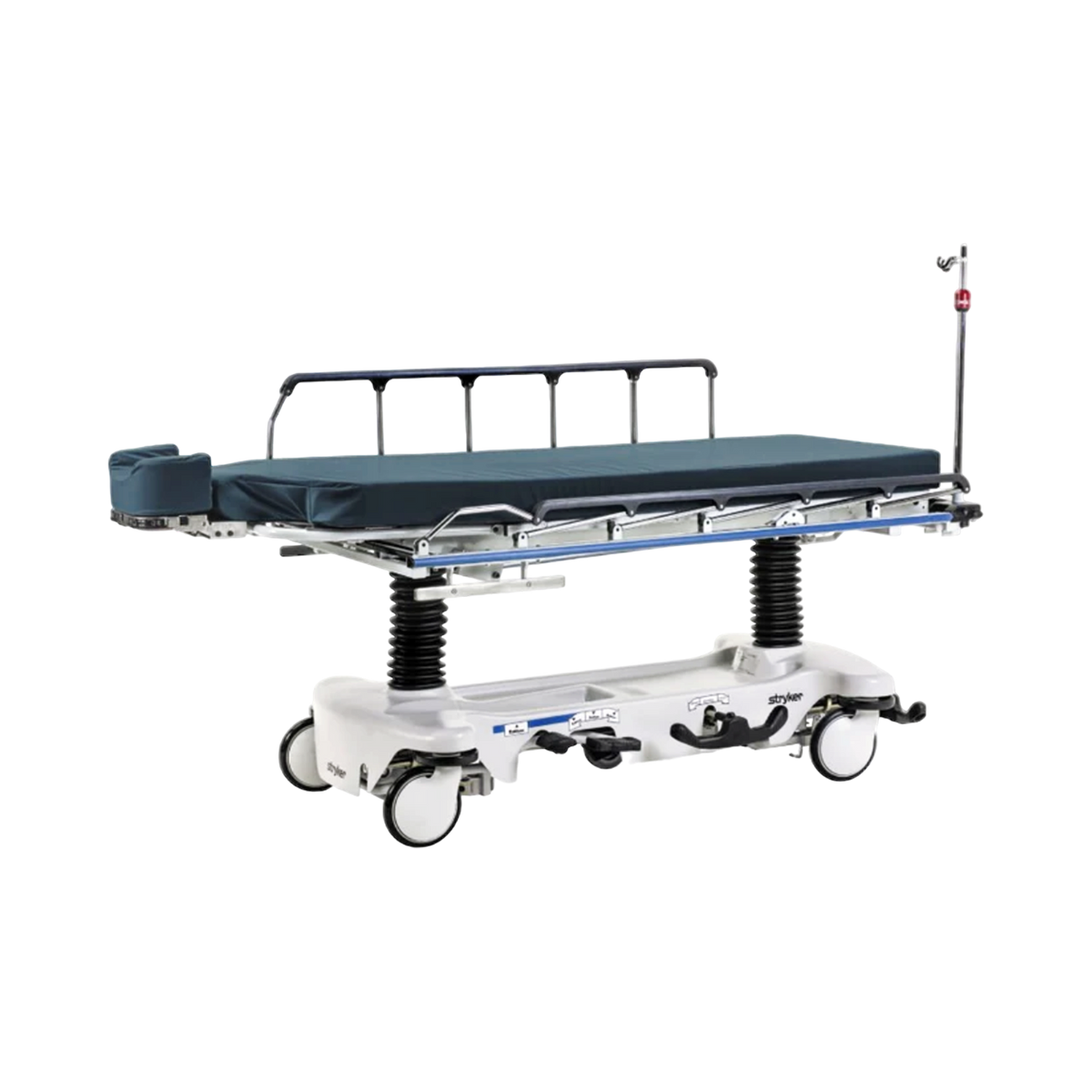The Stryker 1079 Eye Surgery Stretcher provides the highest head-end clearance in the industry, offering surgeons ample legroom to perform delicate eye procedures. Its reliable work surface and mobile design enhance patient security and surgical efficiency. The stretcher's head-end clearance for surgeon access, with positioning controls neatly tucked within the headpiece, allows for full articulation, making it an ideal choice for delicate eye surgeries.