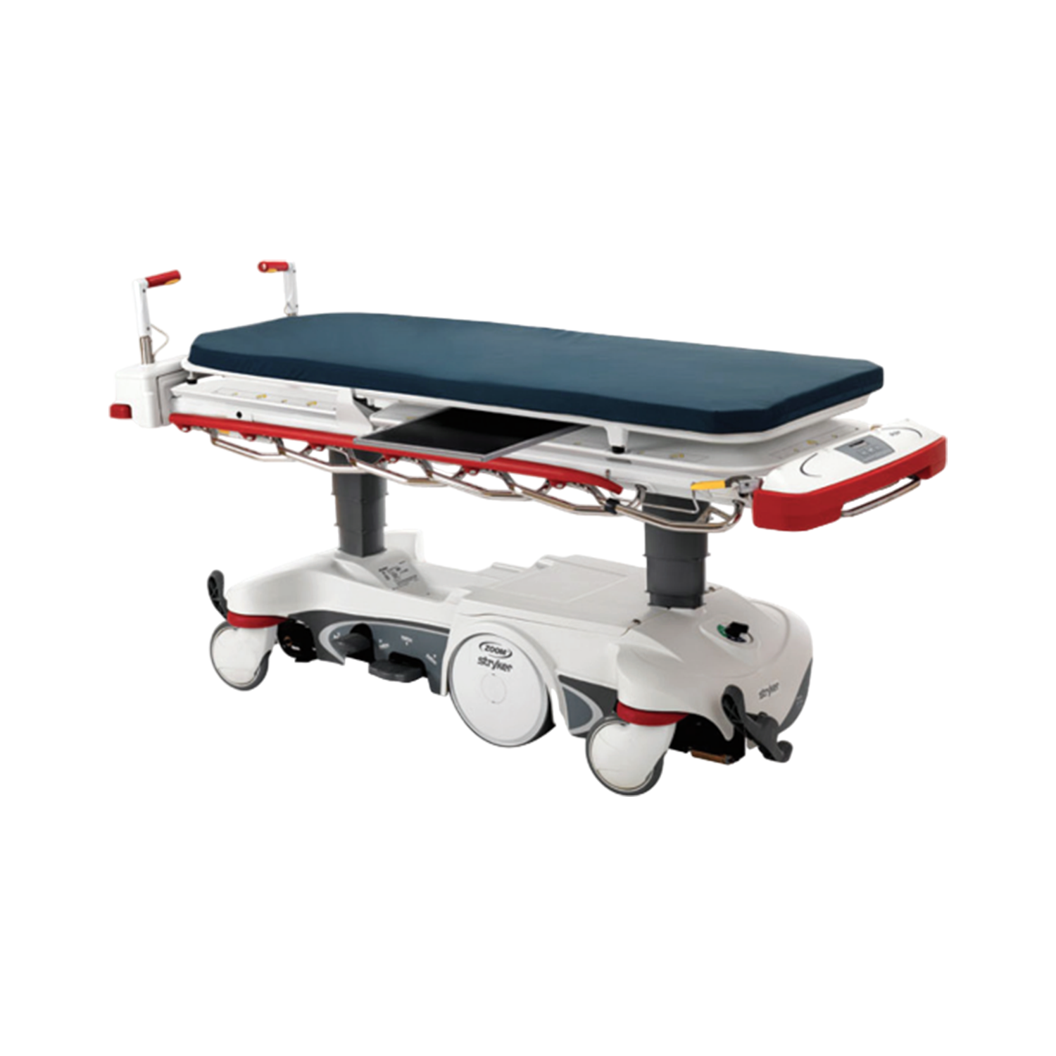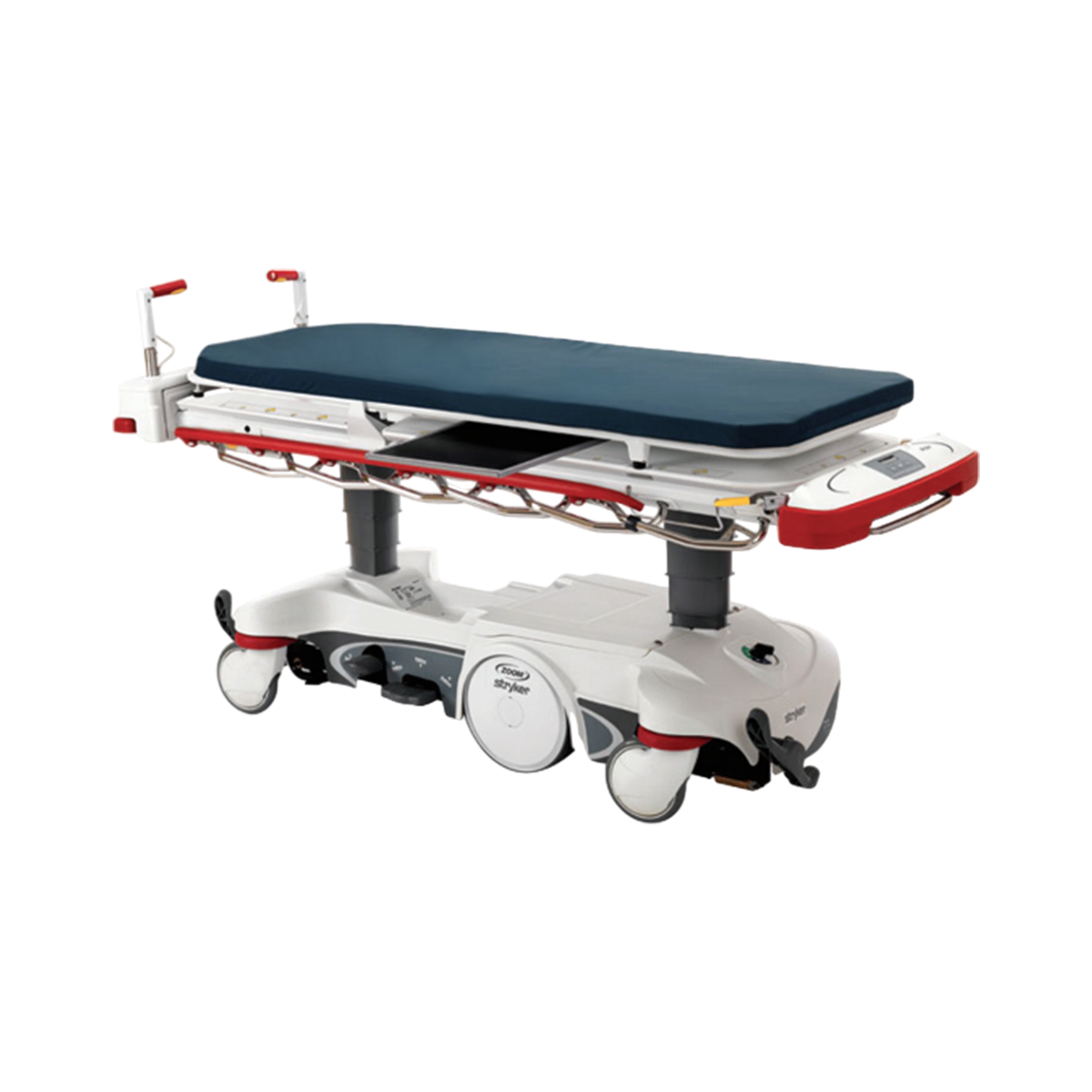 Stryker’s Prime X X-ray Stretcher exclusively uses a red color scheme on its handles, siderails, bumpers and accent rings, so the X-ray stretcher is easily identified.