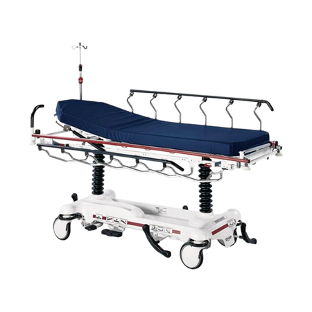 The Stryker 1231 Renaissance Stretcher is a versatile and durable multi-purpose hydraulic stretcher primarily used for general purpose, transport, emergency, procedures, and recovery. It is a full-featured patient handling system that offers enhanced mobility and patient security. The stretcher comes with various features, including Fifth Wheel Steering for increased mobility with reduced effort, pop-up handles for easy maneuverability, and steel-ring brakes to ensure a firmly locked working surface when needed.