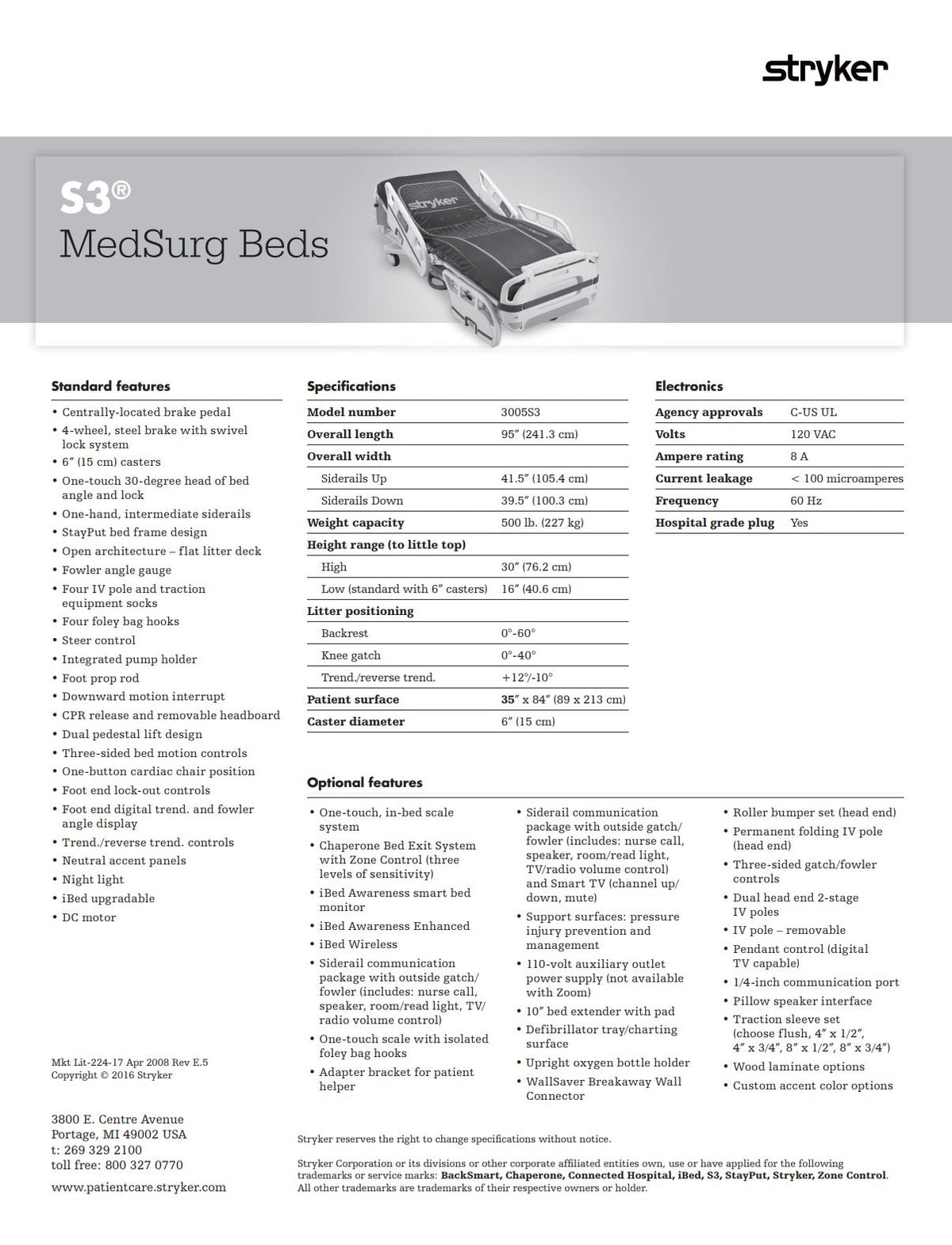 These features make the Stryker 3005 S3 Med-Surg Bed a state-of-the-art solution for healthcare facilities, offering improved patient care and operational efficiencies.
