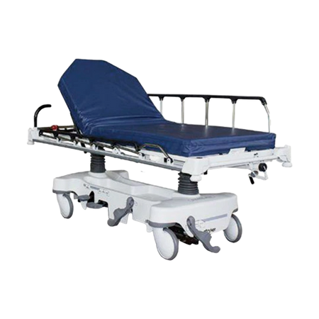 The Stryker 721 Transport Stretcher is a cost-effective, fixed-height medical stretcher designed to provide safe and efficient transport, particularly suited for the ASC environment. It comes with a range of features, including a Fowler (manual), Side Rails, IV Pole Sockets, and O2 Tank Well. The stretcher also includes Central Brake and Steering functions, a Modern Design, and a 500 lb Weight Capacity, making it a secure and practical option for patient transport. The simple design and mobility of the Stryker 721 Transport Stretcher make it an ideal choice for healthcare facilities seeking a reliable and easy-to-use transport solution.