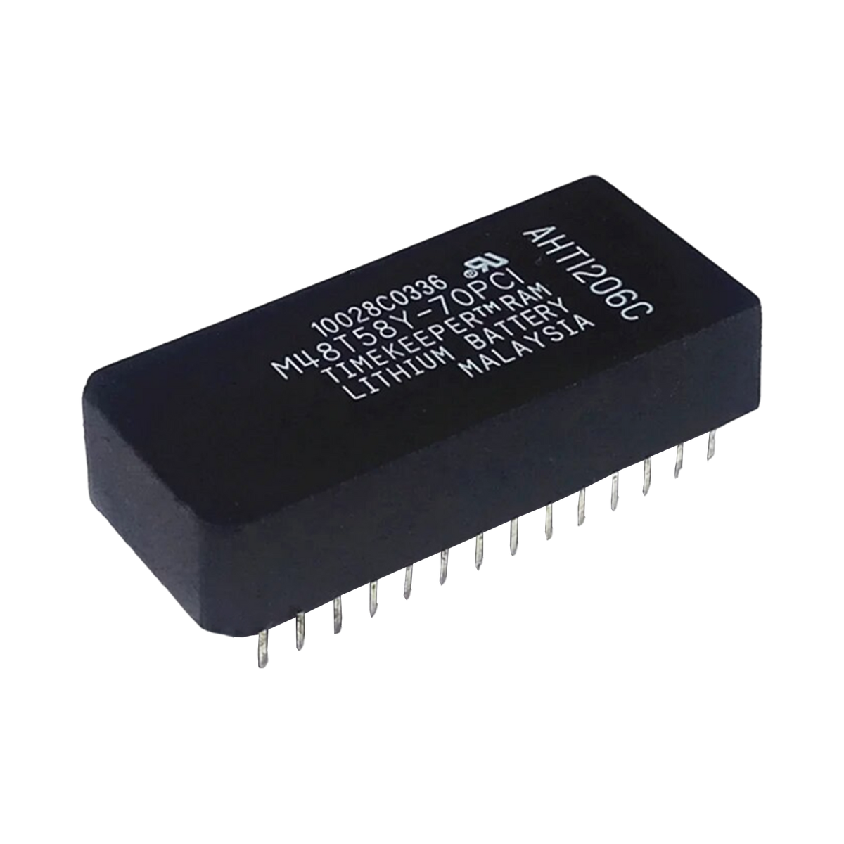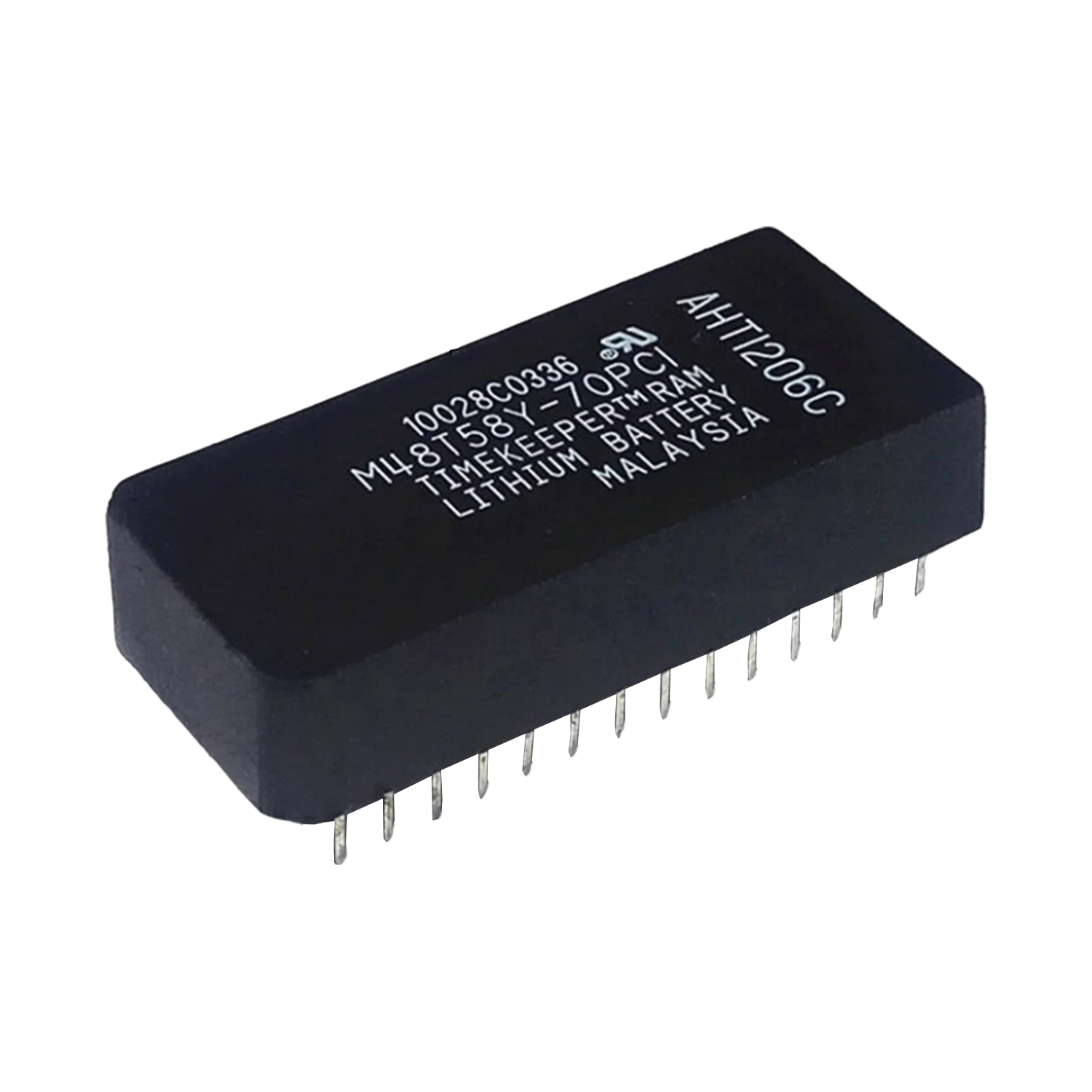 The M48T58/Y TIMEKEEPER®RAM is an 8 Kb x 8 non-volatile static RAM and real-time clock. This monolithic chip is offered in two specialized packages, delivering a highly integrated battery-backed memory and real-time clock solution. The M48T58/Y is a non-volatile pin and function equivalent to any JEDEC standard.
