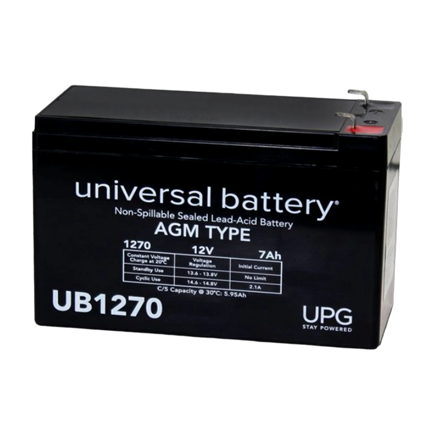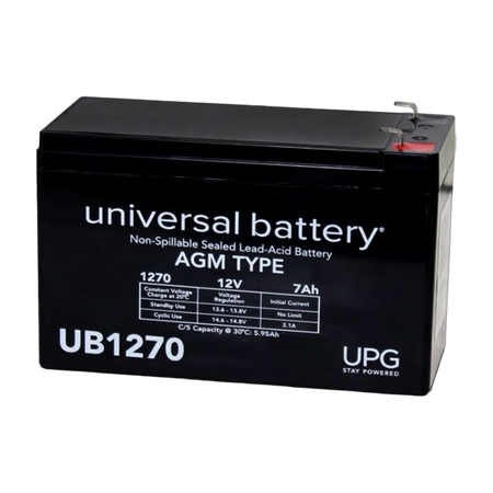 Universal Sealed Lead Acid Battery, 12 V, 7Ah, UB1270, F1 Faston Tab Terminal, AGM Type Battery