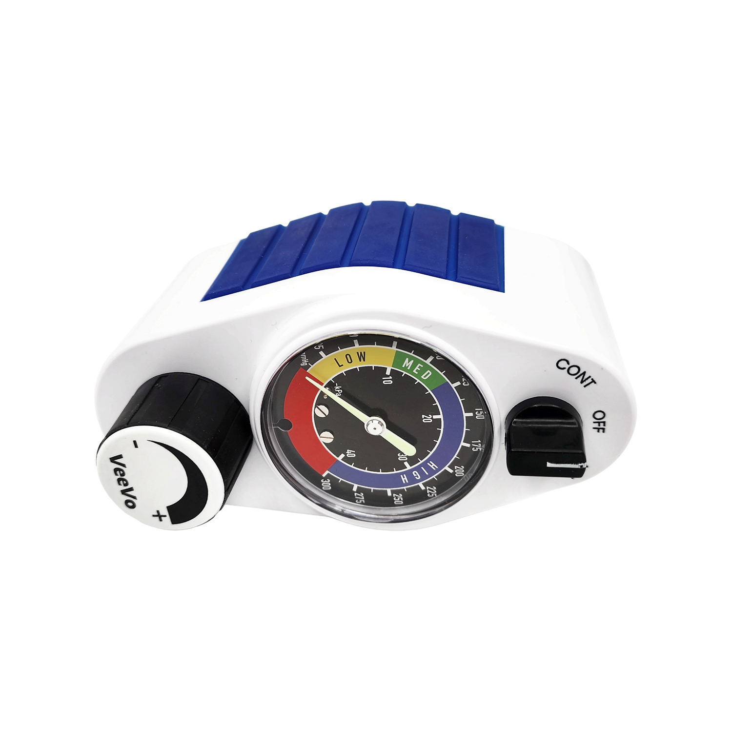 VeeVo® suction regulators are compact, easy-to-use and include many unique features. Each unit includes soft Side Grips™ that provide users with a secure grip on the unit to prevent dropping. The Side Grips are offered in a range of colors to aid in identifying departmental ownership.